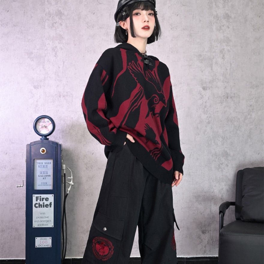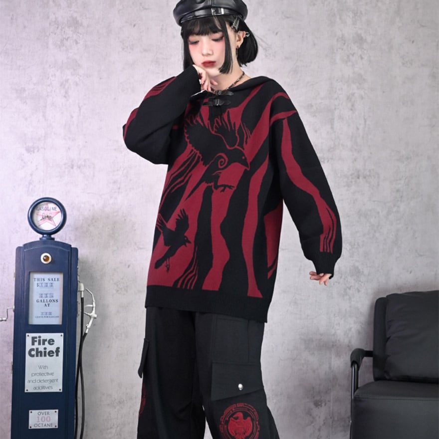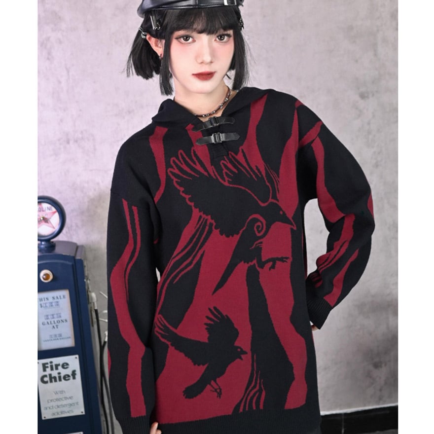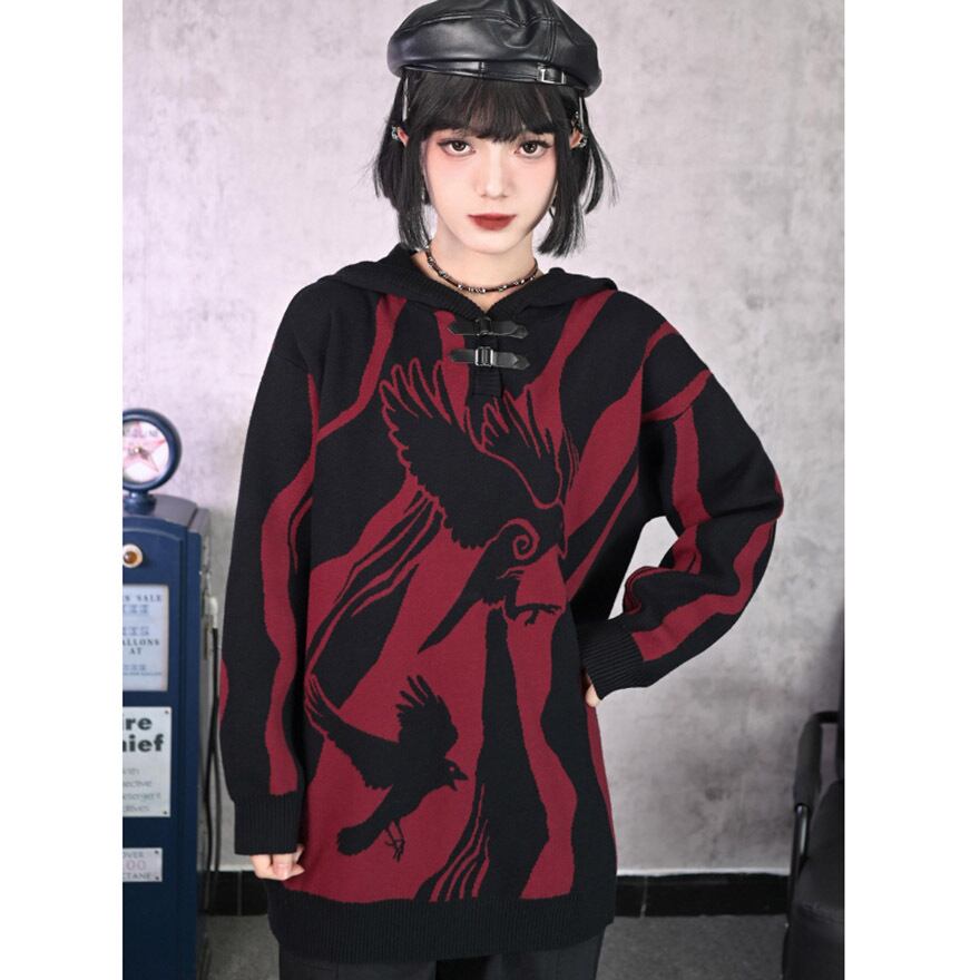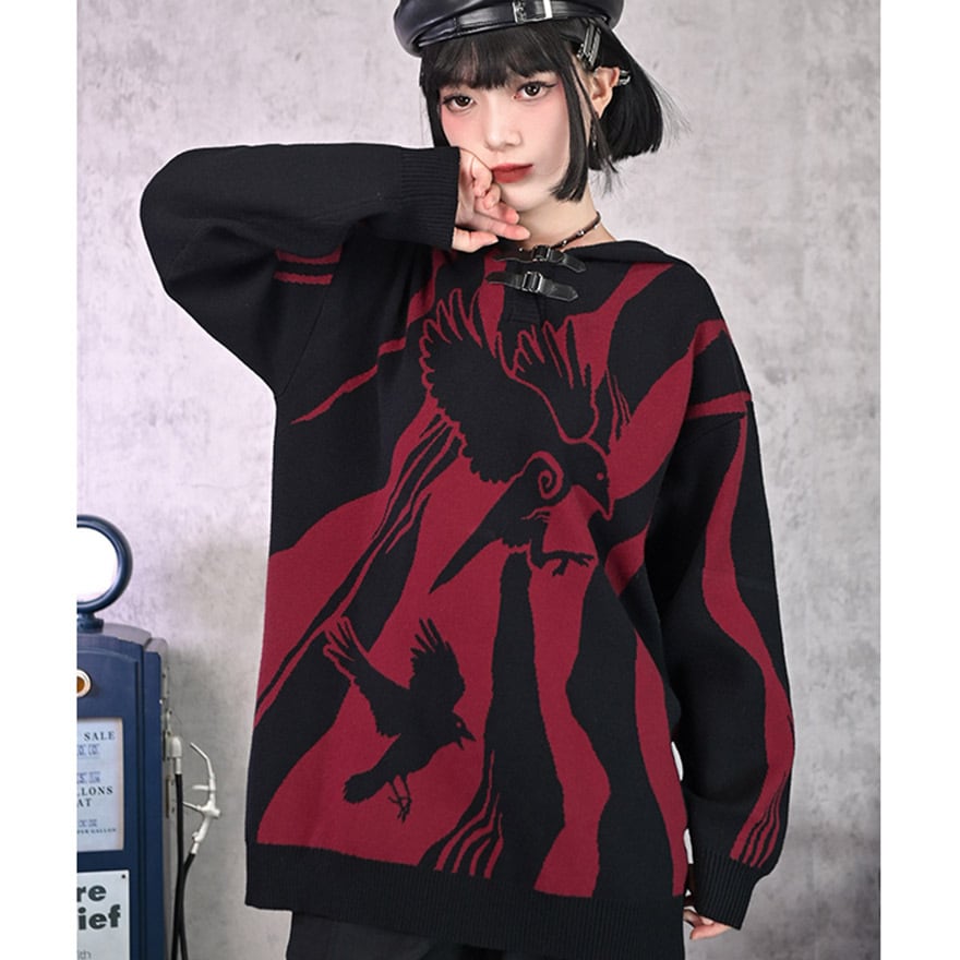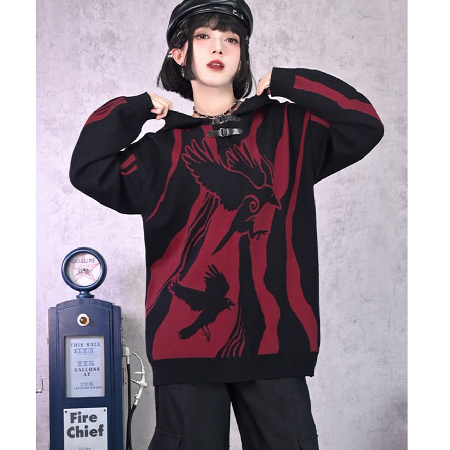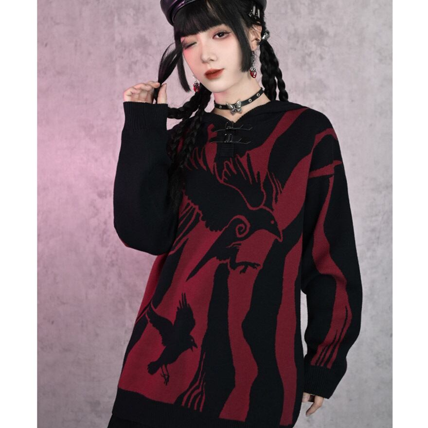 サブカル 服 地雷系 通販 ニット セーター 鴉柄 秋 冬服 古怪舎