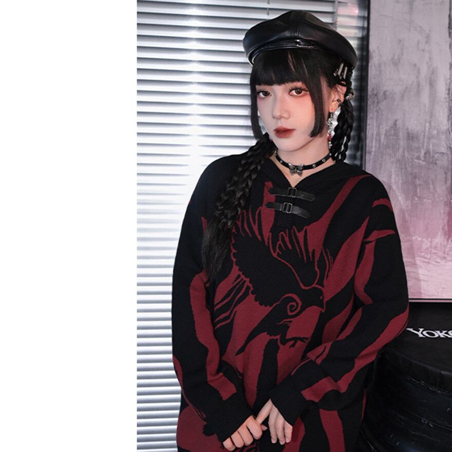 関連キーワード: #サブカル #地雷系 #ニット #セーター #パーカー #ゴシック #パンク #鴉 #オーバーサイズ #秋冬コーデ #V系