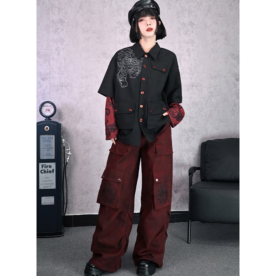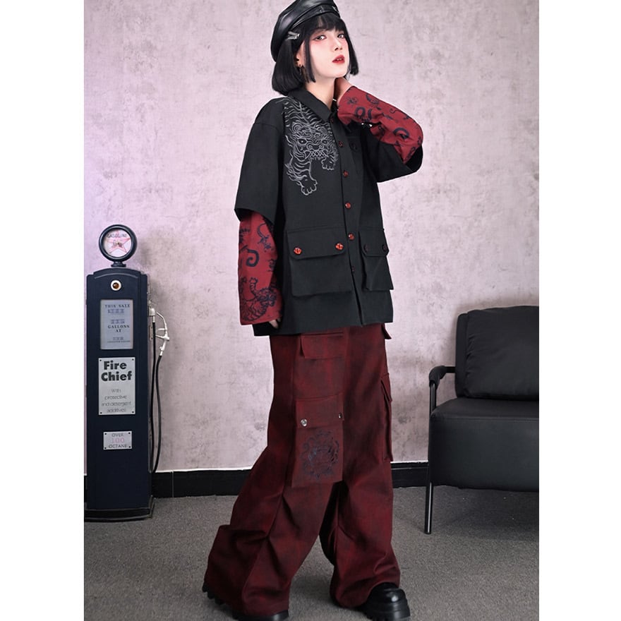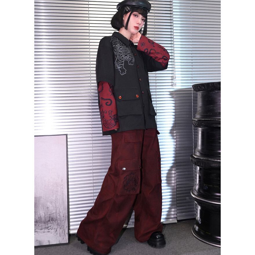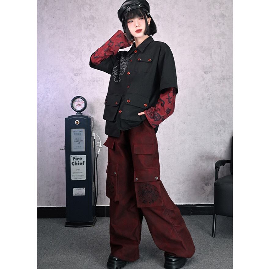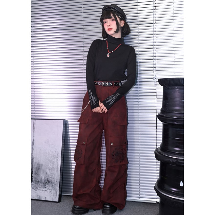 関連キーワード: #サブカル #地雷系 #ストリートファッション #ワイドパンツ #カーゴパンツ #中華風 #刺繍 #ゴシック #赤 #ユニセックス