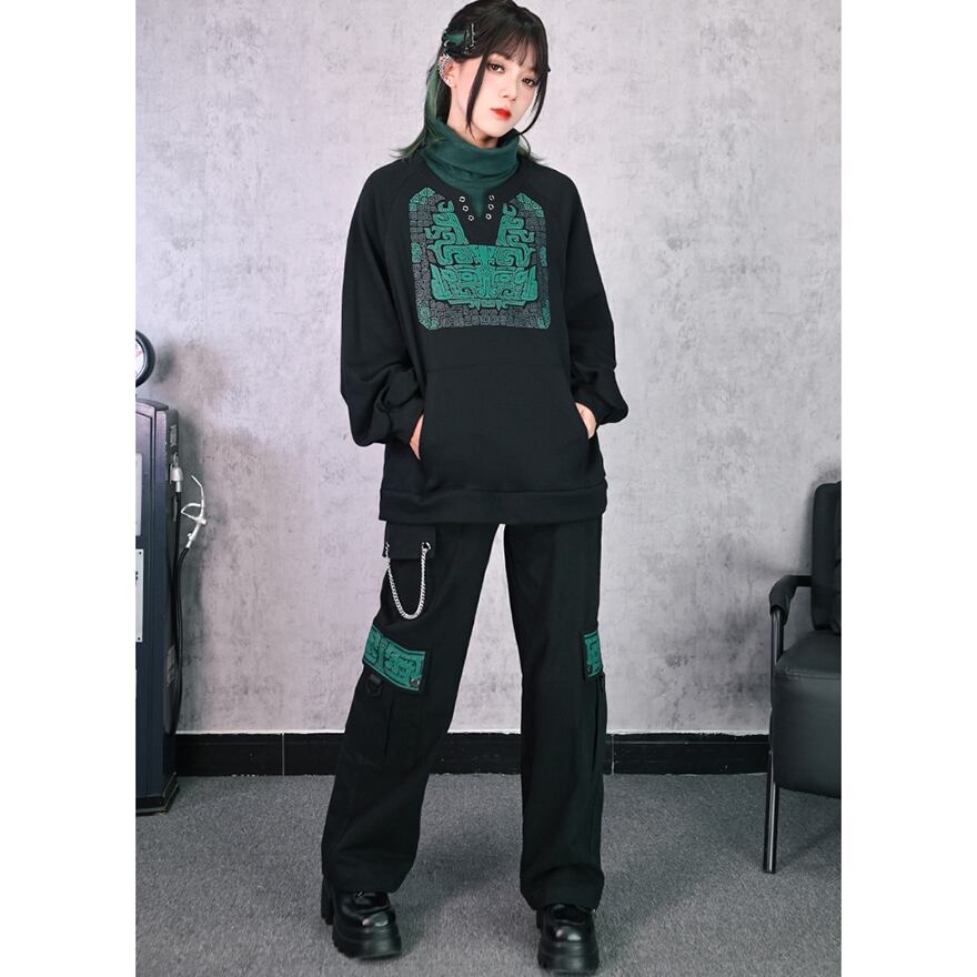 関連キーワード: #サブカル #地雷系 #ストリートファッション #カーゴパンツ #パラシュートパンツ #ワイドパンツ #中華風 #モード系 #黒 #2WAY #個性的