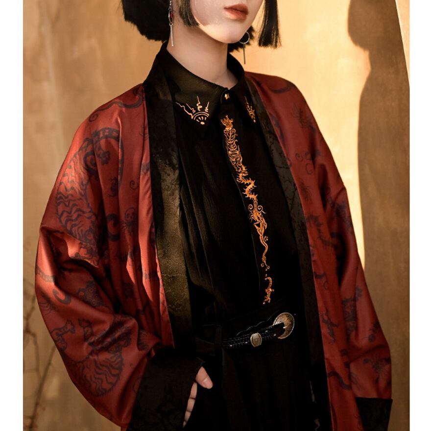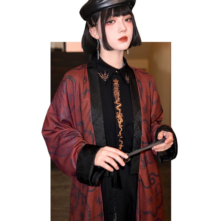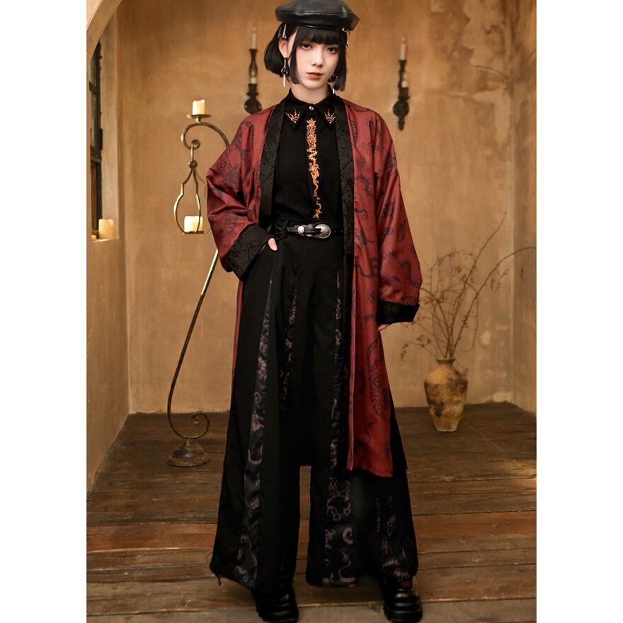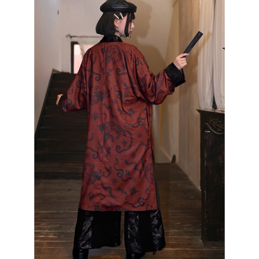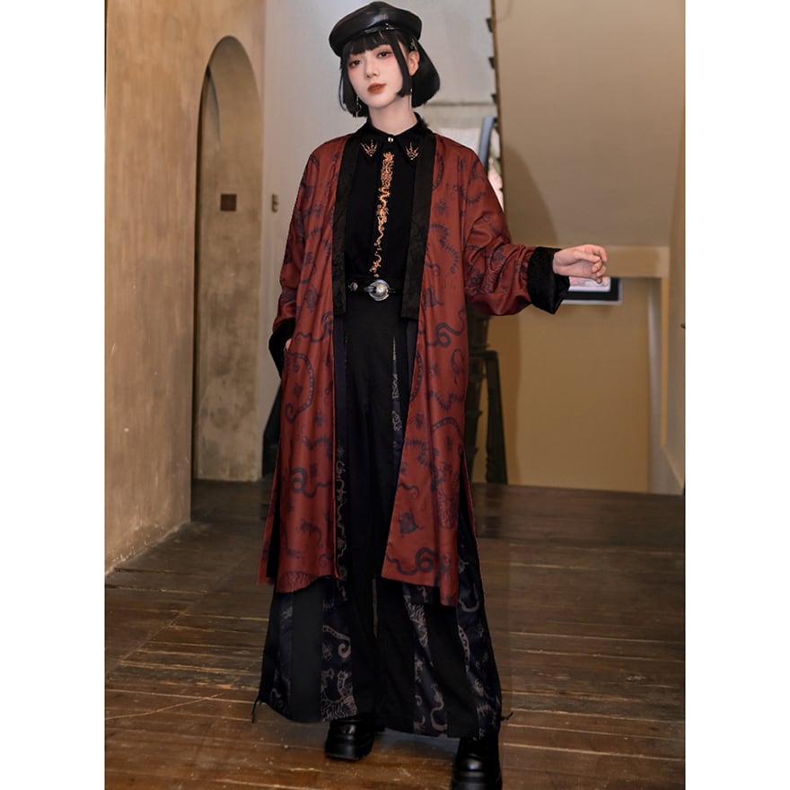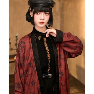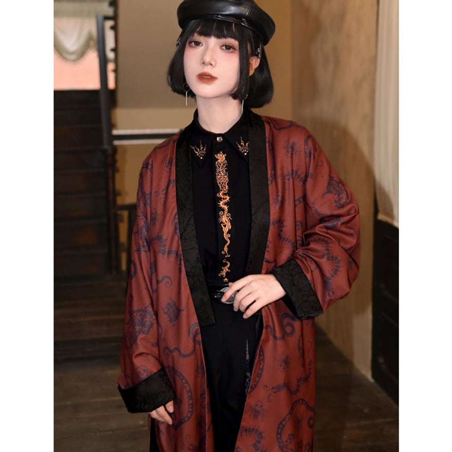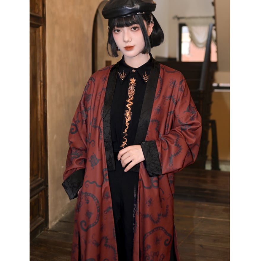 関連キーワード: #サブカル #地雷系 #コート #ロングコート #羽織り #中華風 #チャイナ #ゴシック #モード系 #龍 #赤 #秋冬コーデ
