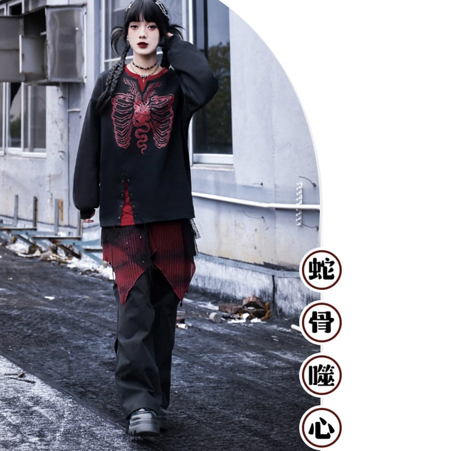 関連キーワード: #サブカル #地雷系 #ゴシック #パンク #トレーナー #スウェット #スケルトン #編み上げ #個性的 #古怪舎