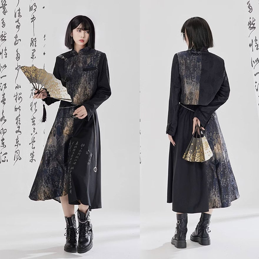 サブカル 服 地雷系 通販 チャイナ風 スカート レトロ バイカラー 秋冬服 卿棠オリジナル アラサー 30代