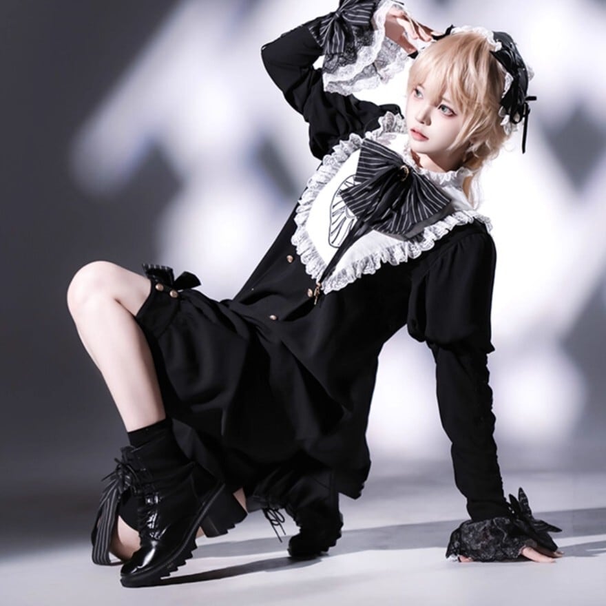シックでありながらも、レースのディテールが華やかさを添えるセットアップ。少し大人っぽいロリータファッションを楽しみたい方におすすめです。