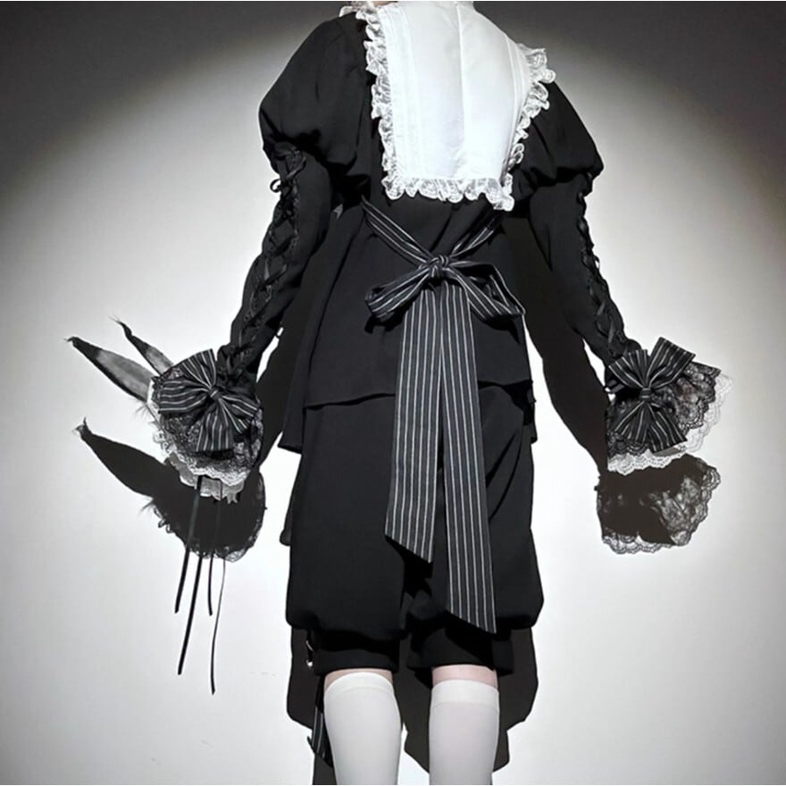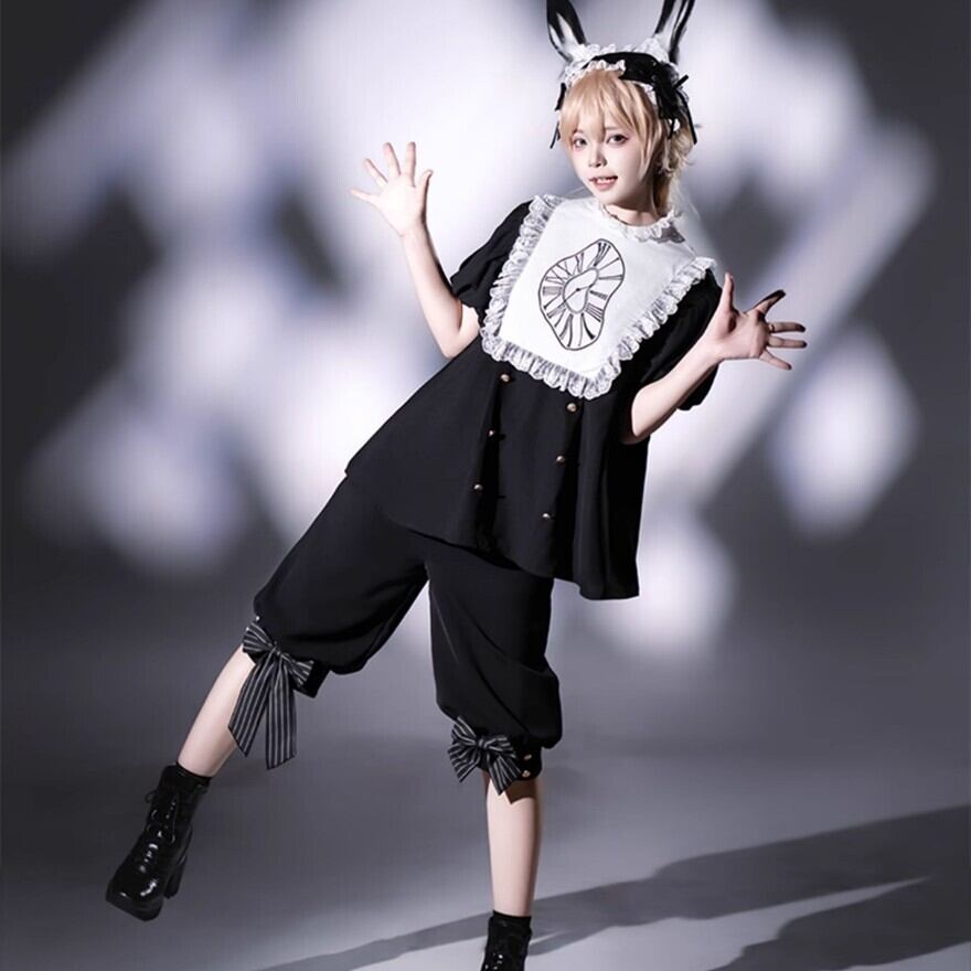 セットアップ: カチューシャ+上着+付け袖+ズボン+蝶結び5個