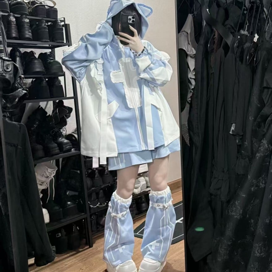 関連キーワード: #ロリータ #サイバーロリータ #セットアップ #水色 #レッグウォーマー #ユニーク #可愛い