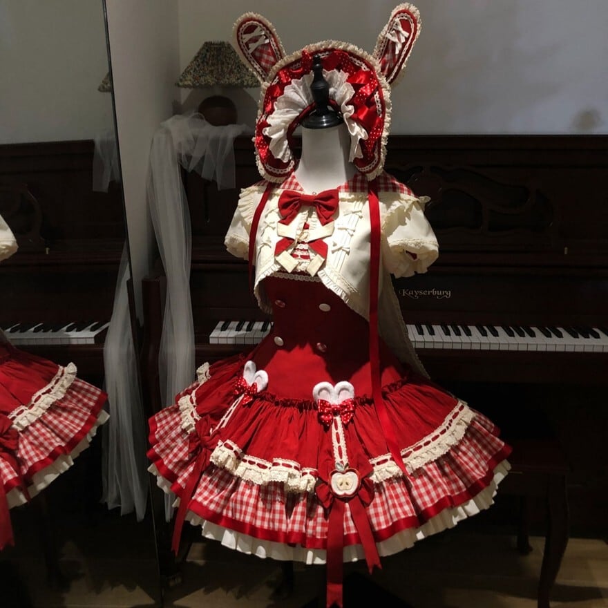 関連キーワード: #ロリータ #ロリータファッション #甘ロリ #ジャンパースカート #ジャケット #セットアップ #うさ耳 #りんご #ギンガムチェック #可愛い