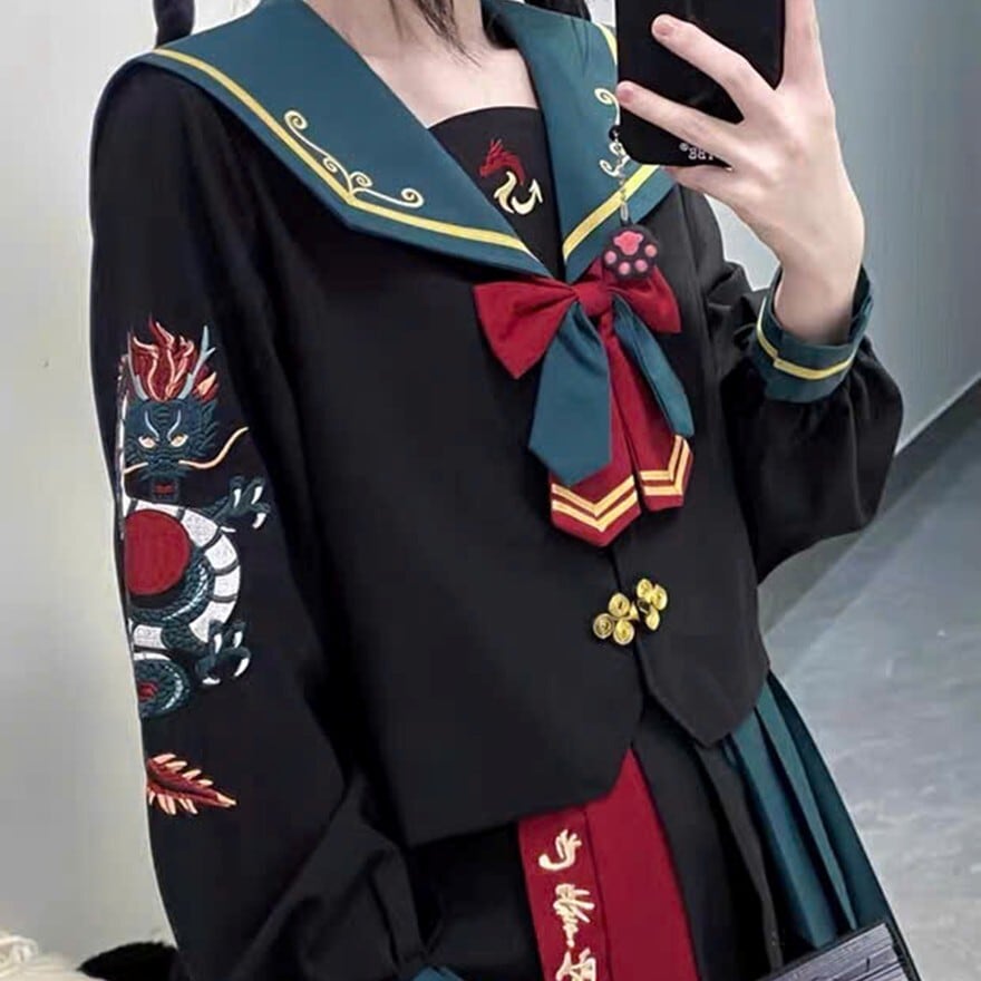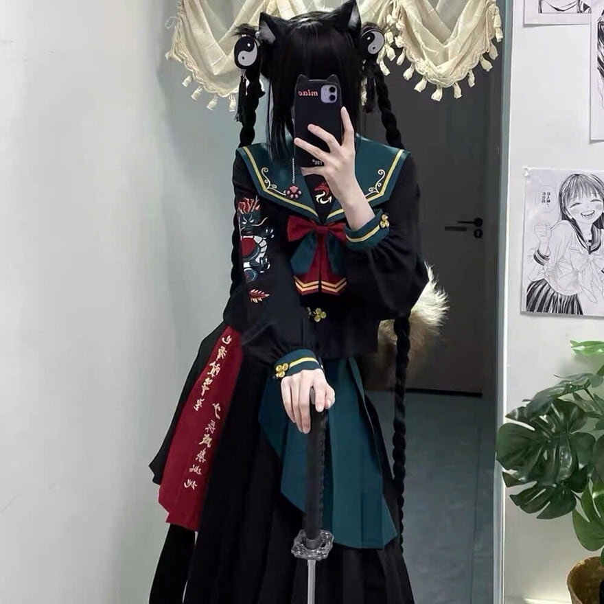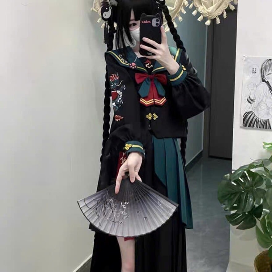 中華ロリィタ セーラー服 セットアップ 長袖 刺繍 不良少女