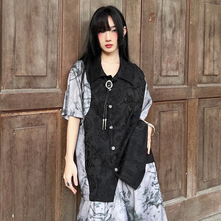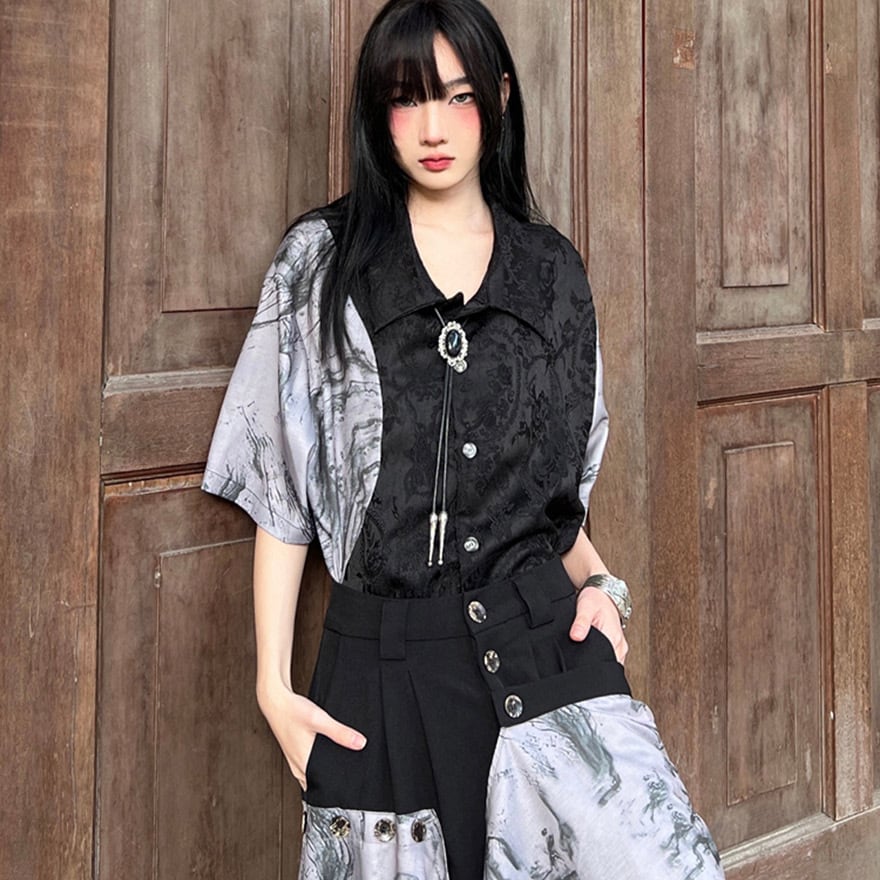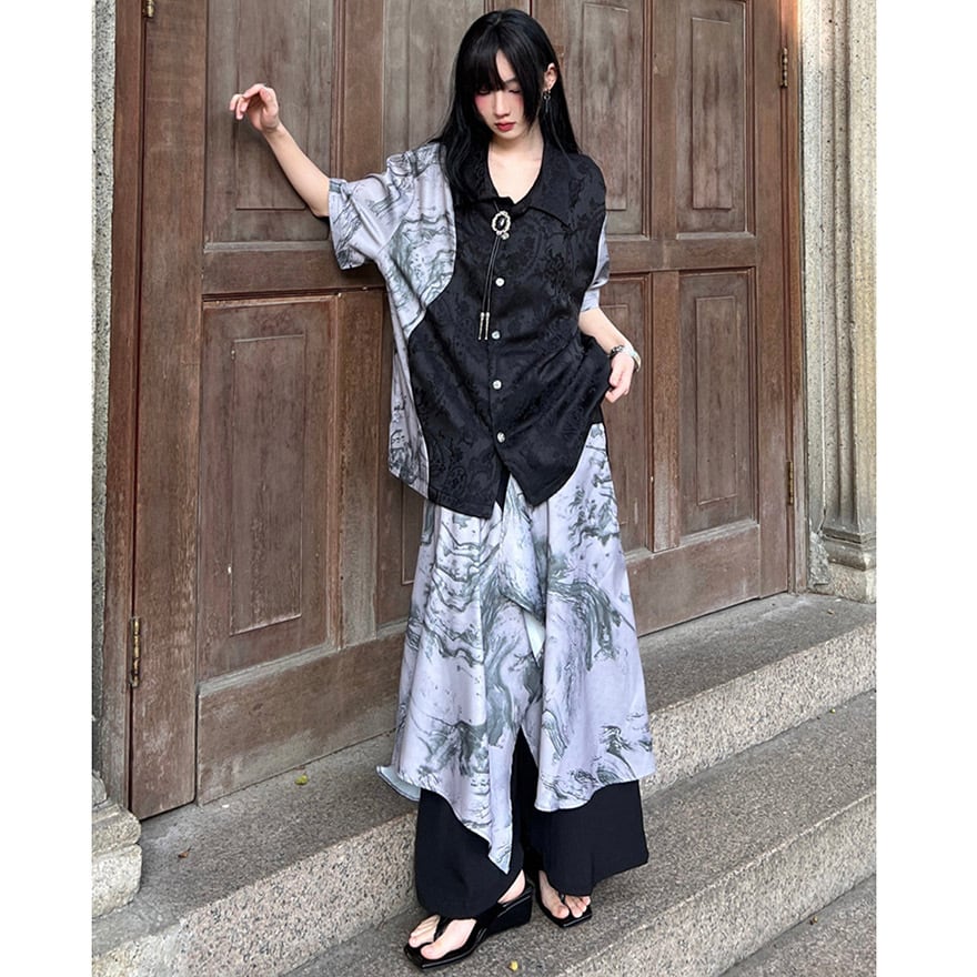 即納 チャイナ風 半袖シャツ 羽織り トップス 中華レトロ