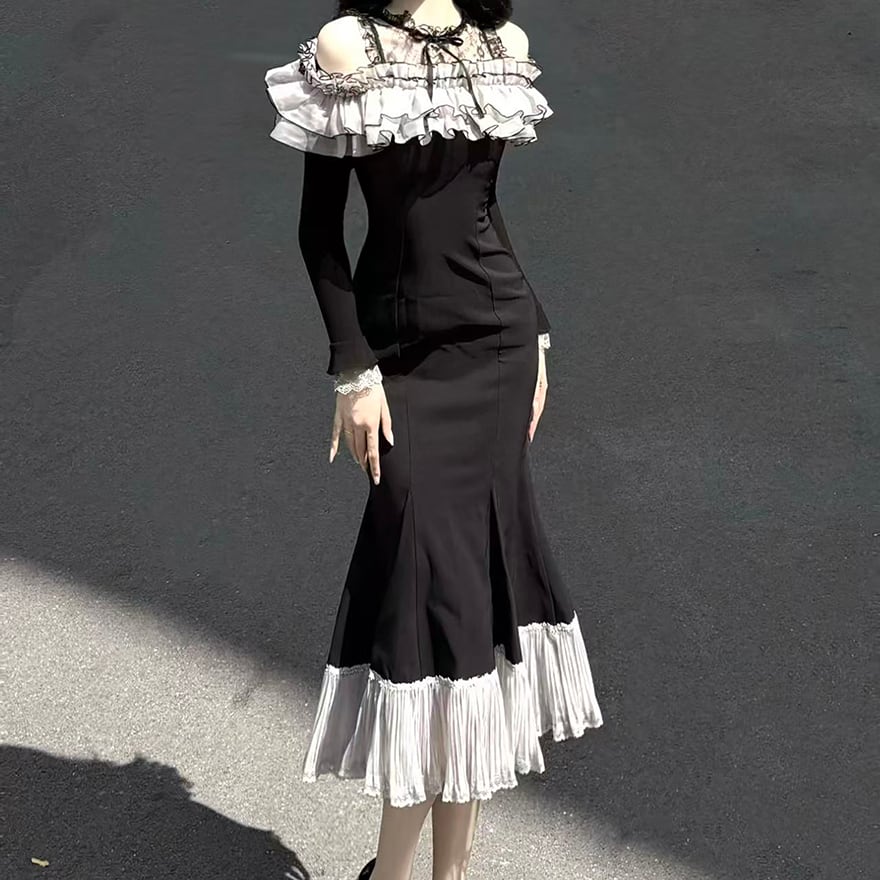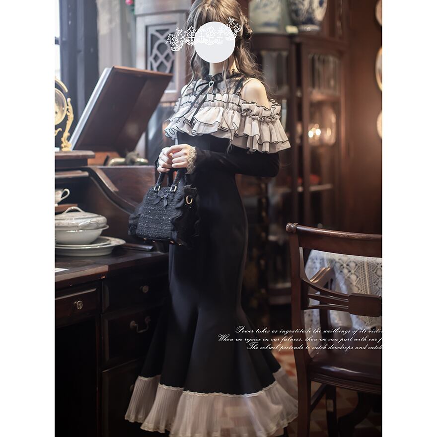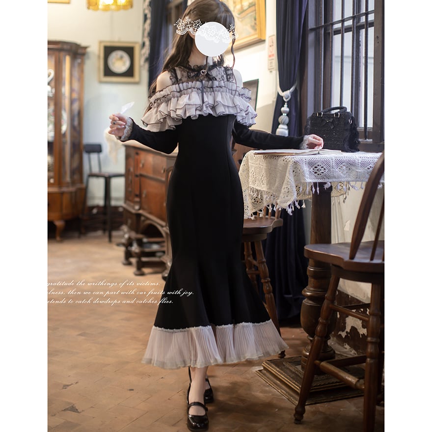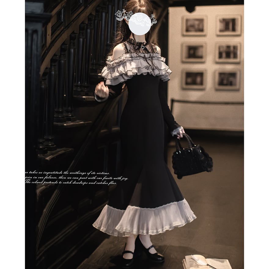 関連キーワード: #ロリータ #クラロリ #ワンピース #マーメイドドレス #ロングワンピース #オフショルダー #フリル #エレガント #シック #お嬢様 #パーティー #結婚式 #二次会 #清楚系