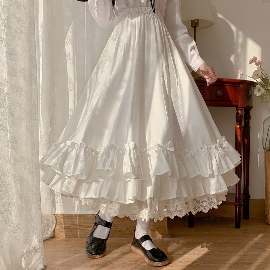 即納 クラシカル ロングスカート ハイウエスト 控えめ レース 秋コーデ|SEASONZ