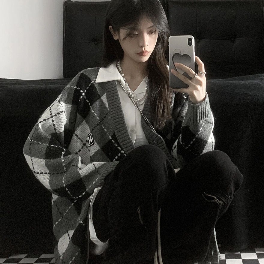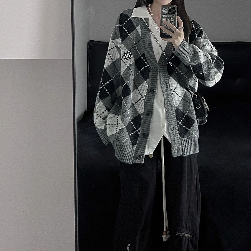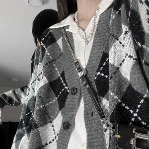 アーガイル柄がお洒落なゆったりサイズのカーディガンです。