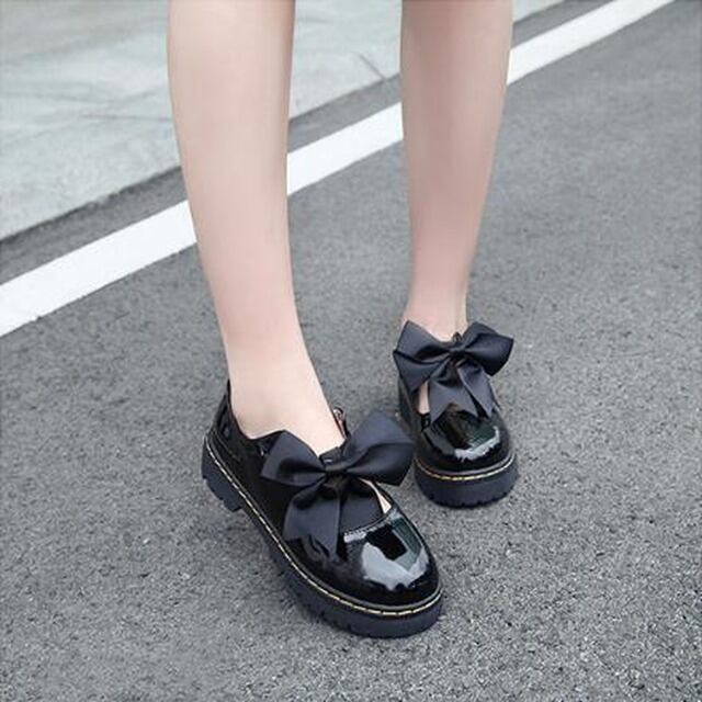 即納【甘辛ミックス】BIGリボン マフィンシューズ | トラックソール 厚底 メリージェーン