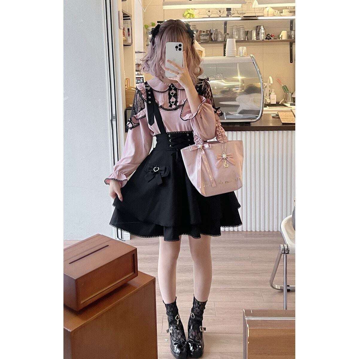 着回し力も抜群 ジャンパースカートやサロペットスカートとの相性は完璧!また、シンプルな黒のスカートやパンツと合わせるだけで、一気にロリィタ・地雷系ファッションが完成します。袖口のフリルにも黒レースを施し、手元まで抜かりなく可愛く仕上げました。