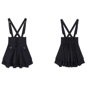 着回し力も可愛さもオールA!地雷系・量産型コーデに欠かせない、王道ブラックのサロペットスカートです。
