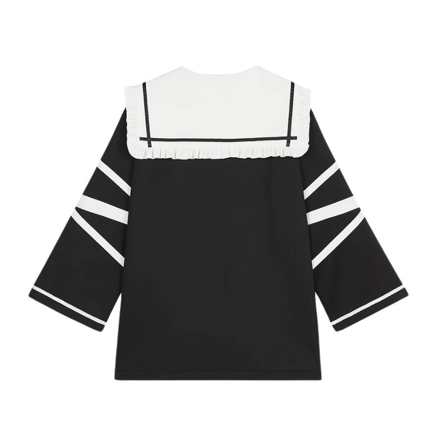 BIGセーラーカラーで小顔効果も 顔まわりを華やかに見せる、フリル付きの大きなセーラー襟。オーバーサイズのBIGシルエットなので、気になる体型をカバーしつつ、華奢な印象を与えてくれます。