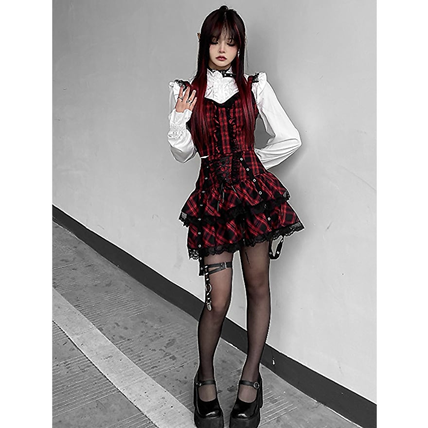 写真のチェック柄セットアップのオプションのブラウスです。