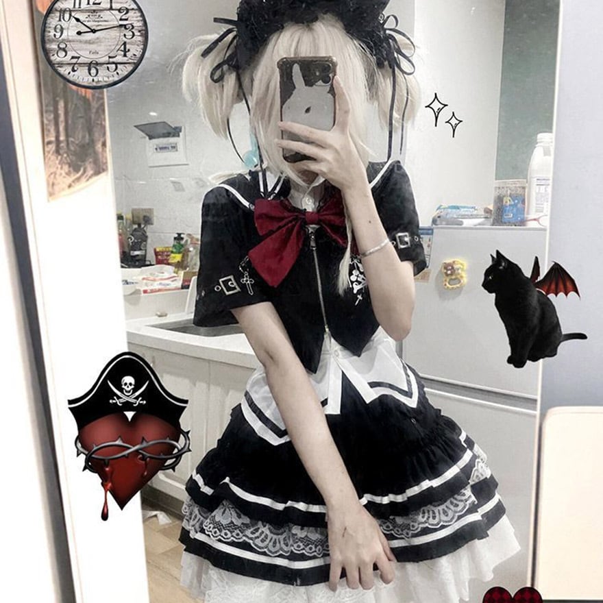 関連キーワード: #ゴシック #サブカル #地雷系 #セットアップ #セーラー服 #フリル #レース #病みかわいい #天使界隈 #推し活 #ライブ衣装