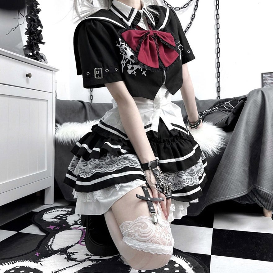 ゴシック 制服セット 上下セット フリル レース ダークファッション 推し活 ライブ衣装