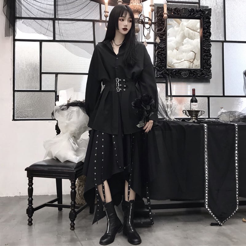 別売りのアシメスカートとコーデしてゴシックファッションが格上げ