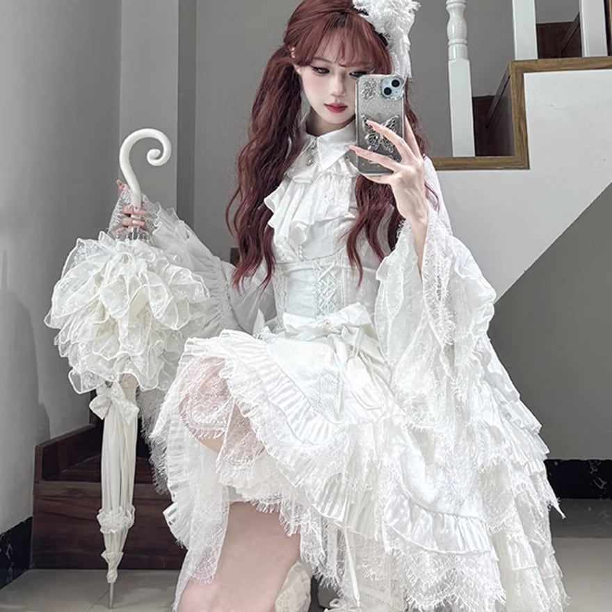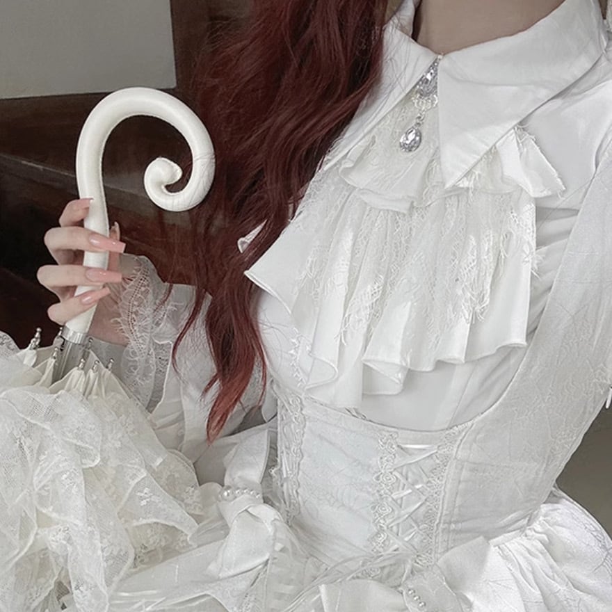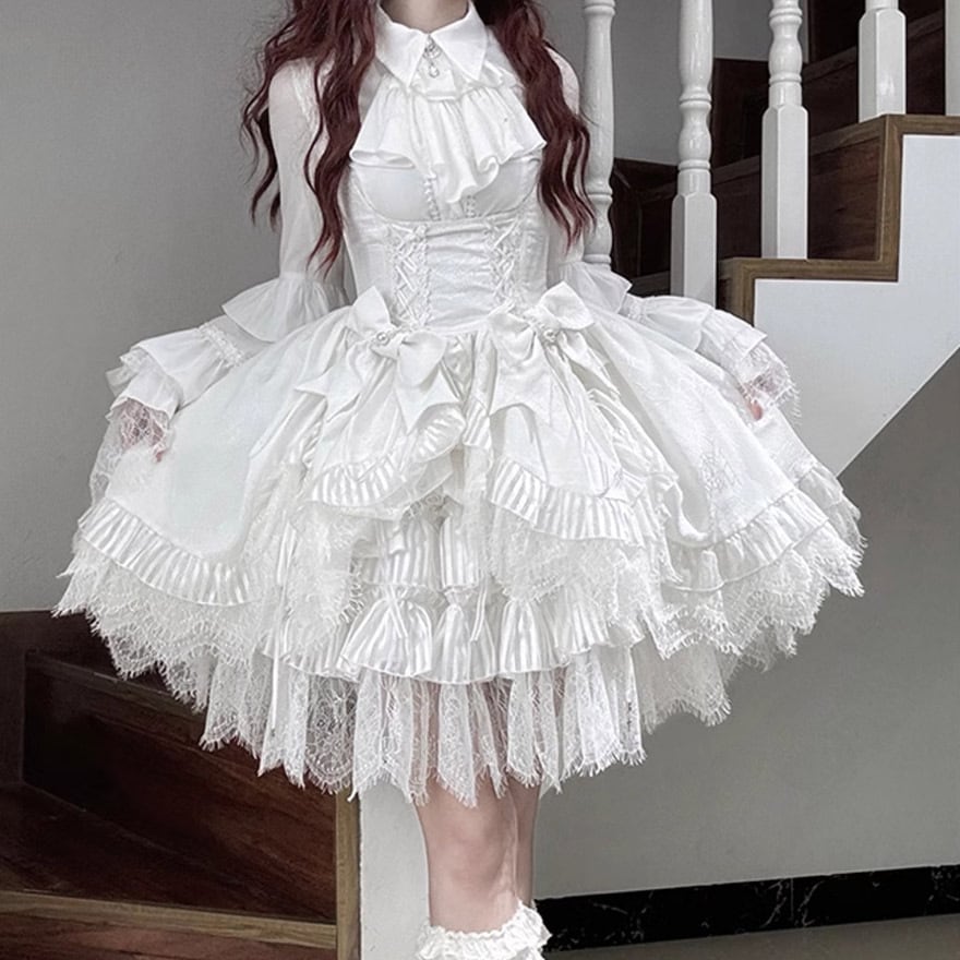 即納 ホワイトM ゴシックスカート コルセットスカート レース ゴスロリ