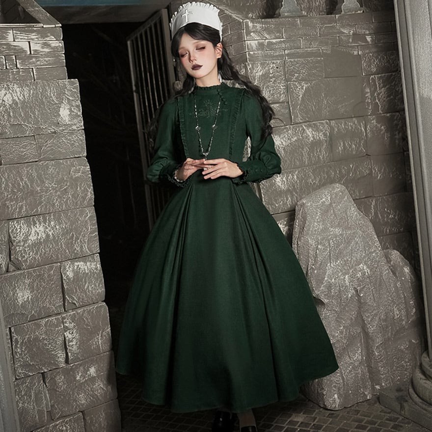 関連キーワード: #ゴスロリ #ロリータ #ナース風 #ダークグリーン #エプロン #刺繍 #病みかわいい #セットアップ #ハロウィン #コスプレ #撮影会