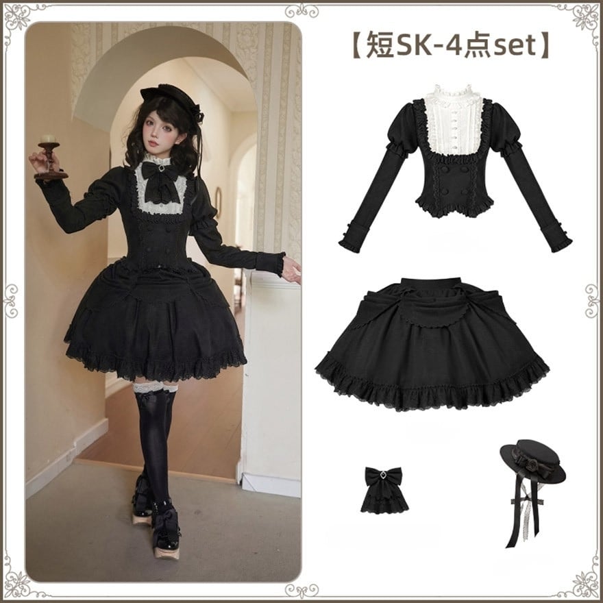 ゴスロリ レトロクラシカル ショートスカート 帽子付き 4点セット PUJI