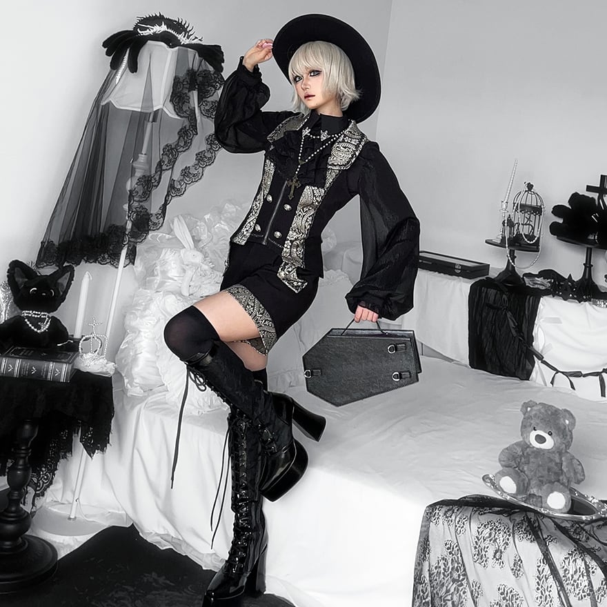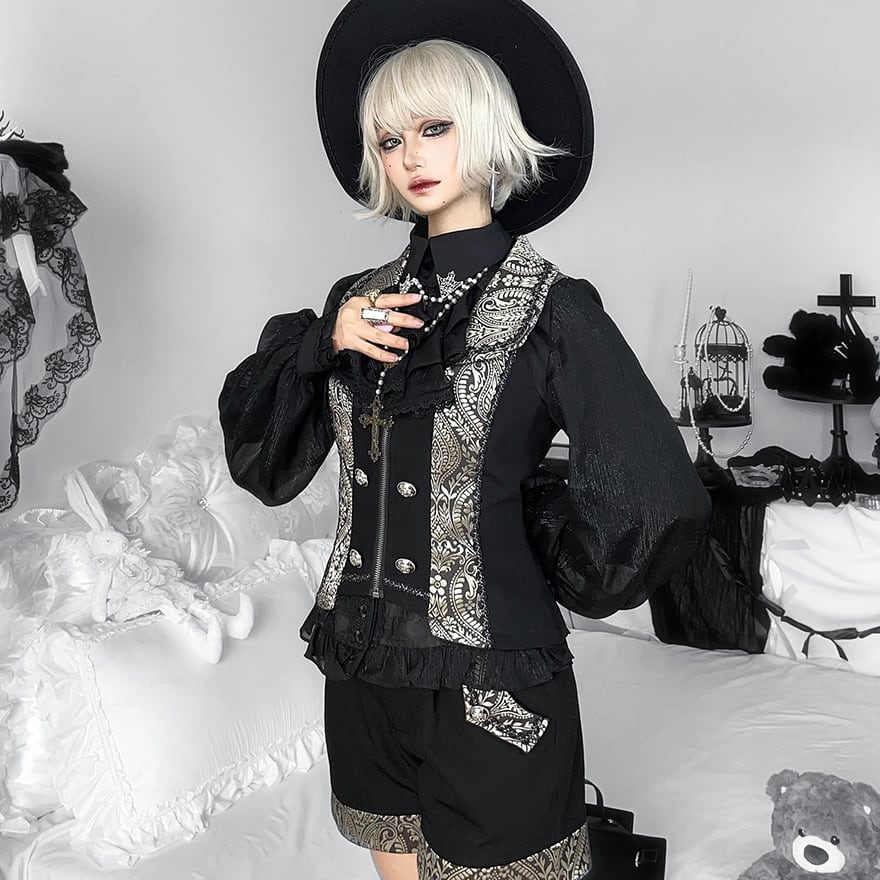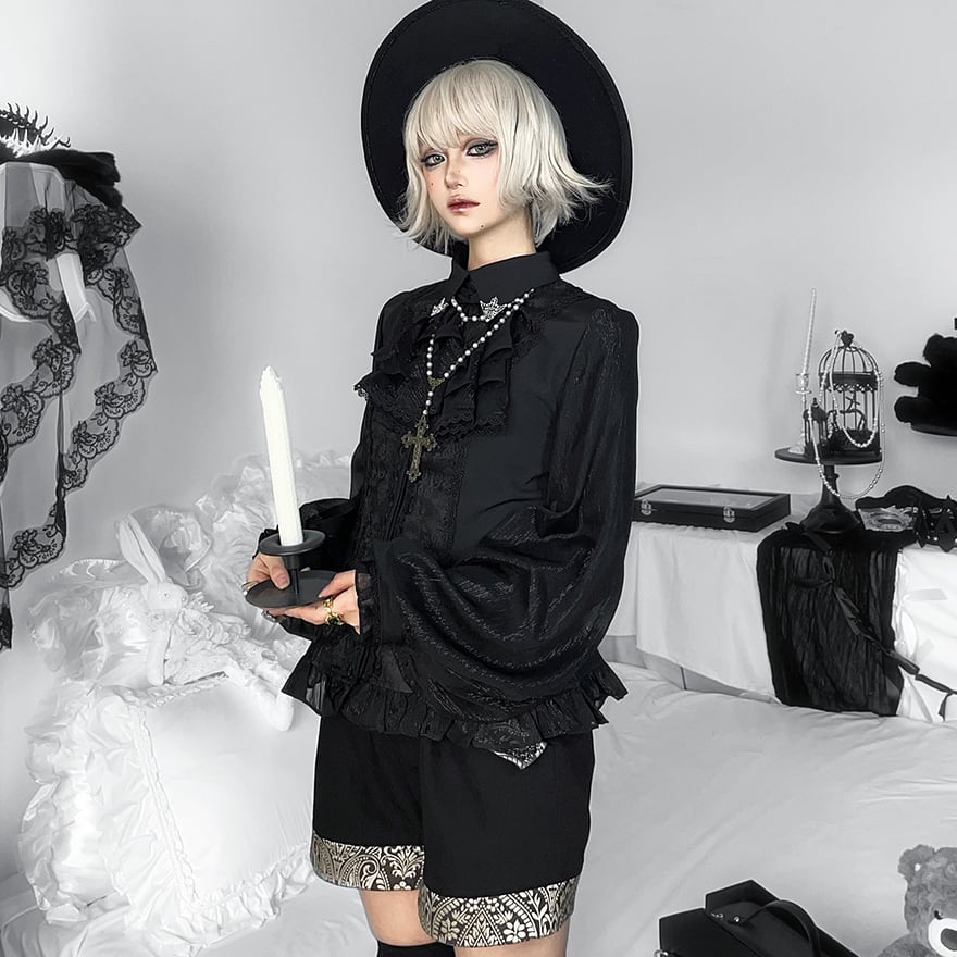 関連キーワード: #ゴスロリ #王子系 #皇子系 #男装 #ブラウス #バルーンスリーブ #フリル #レース #サブカル #地雷系 #V系 #ゴシック #モード系