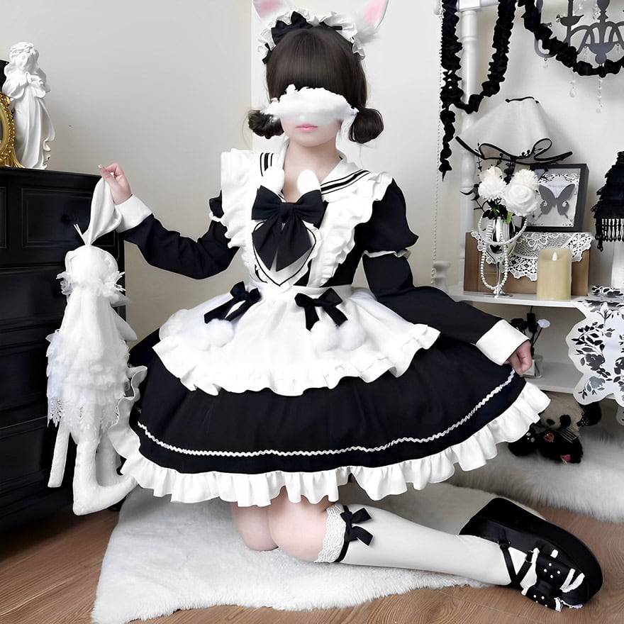 うさ耳付きの大きなセーラー襟が目を惹く、メイド風のワンピースです。