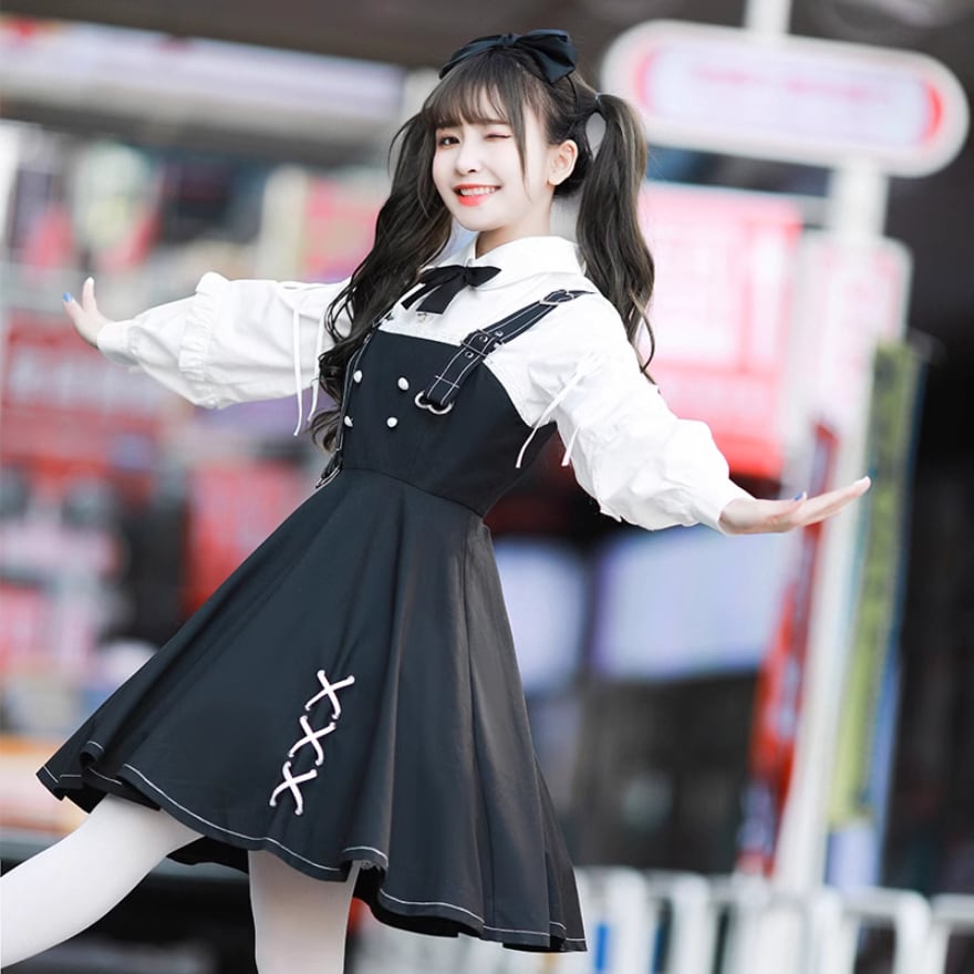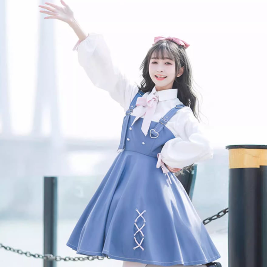 量産型 セミロリ ブラウス ネックリボン付き ガーリー 甘め