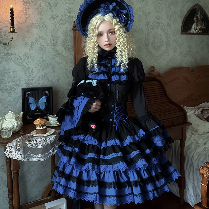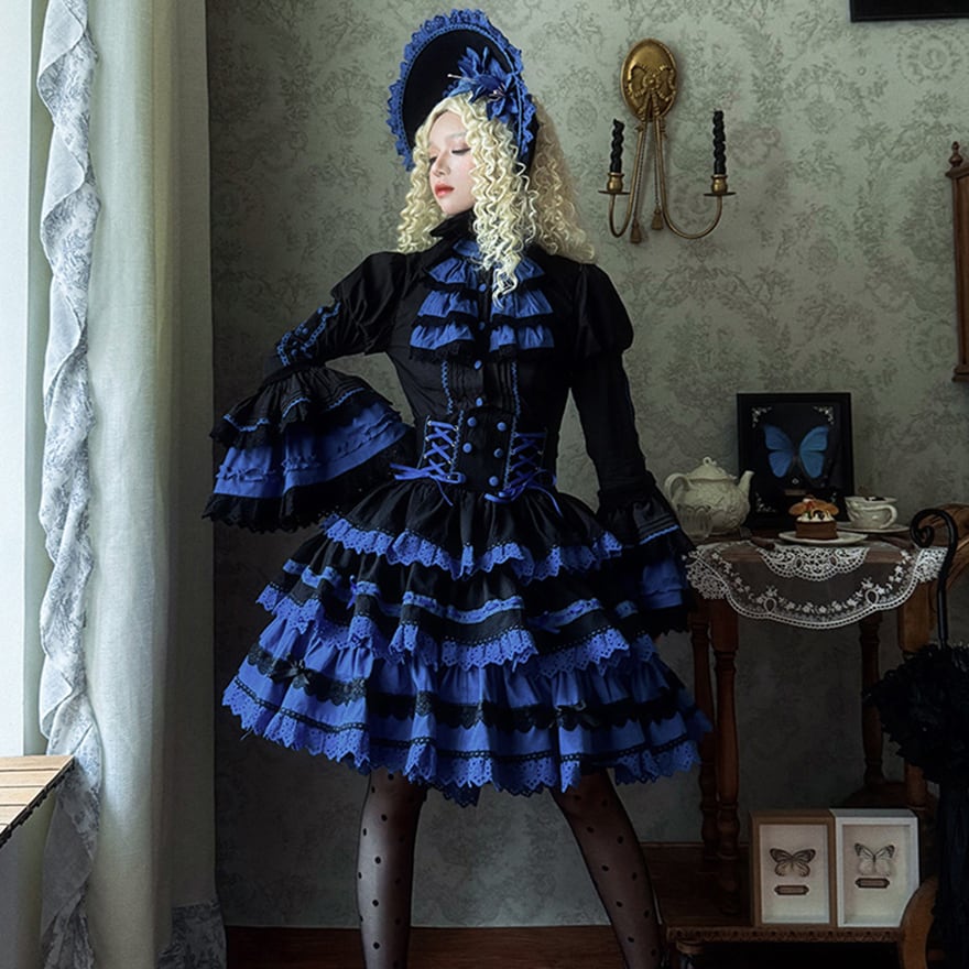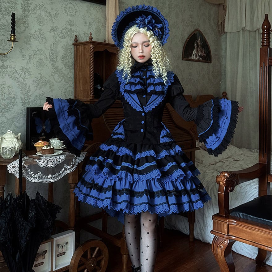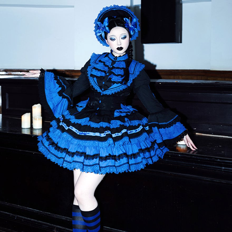 関連キーワード: #ゴスロリ #ロリータファッション #セットアップ #姫袖 #ケーキスカート #ゴシック #青 #黒 #エレガント #可愛い #お茶会 #ライブ