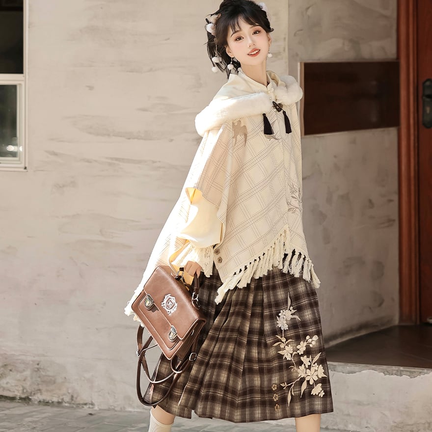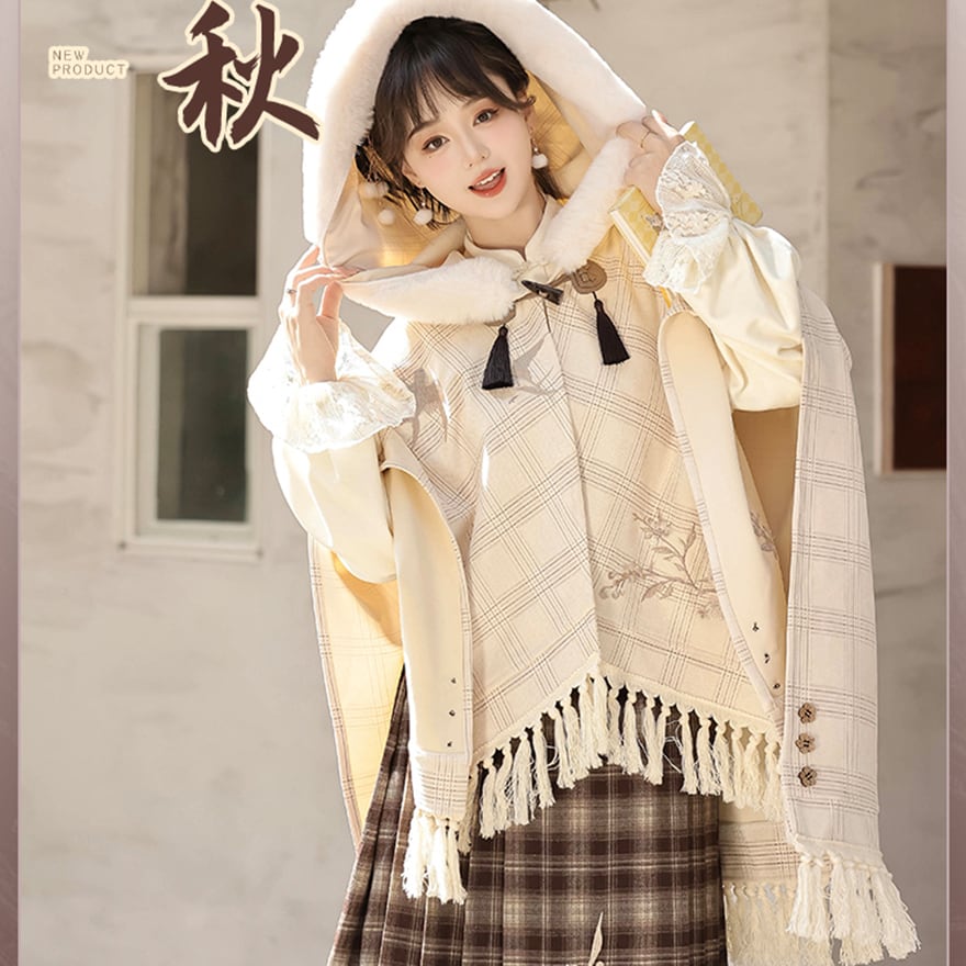 関連キーワード: #ロリータ #クラロリ #森ガール #ケープ #ポンチョ #アウター #秋冬 #チェック柄 #刺繍 #ファー #可愛い #童話 #ナチュラル