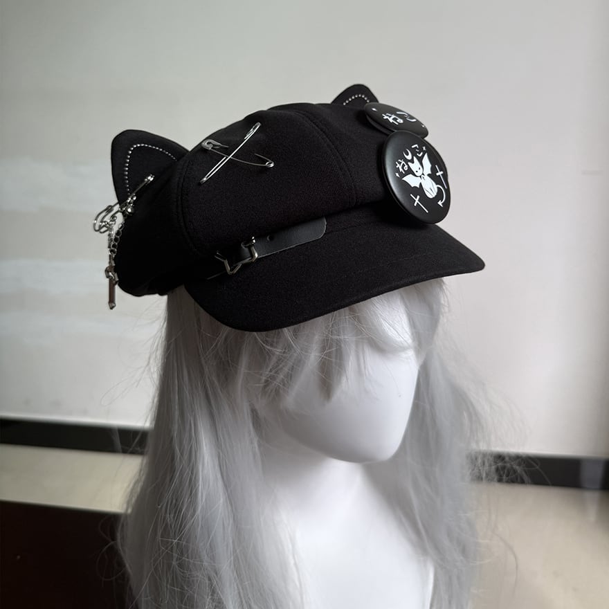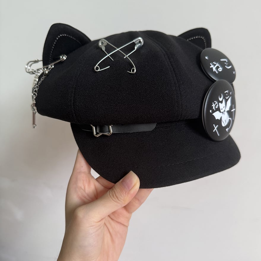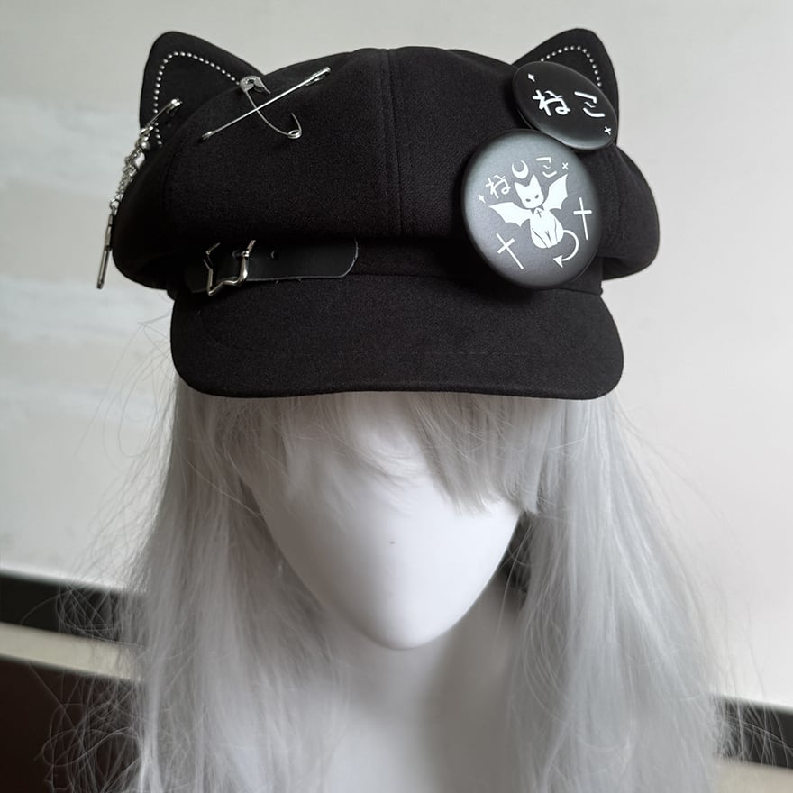 ぴょこんと生えた猫耳がアイコニックな、地雷系ファッションにぴったりのキャスケットです。