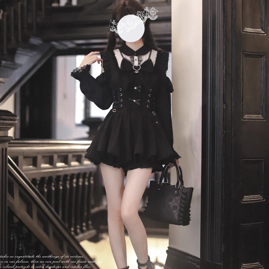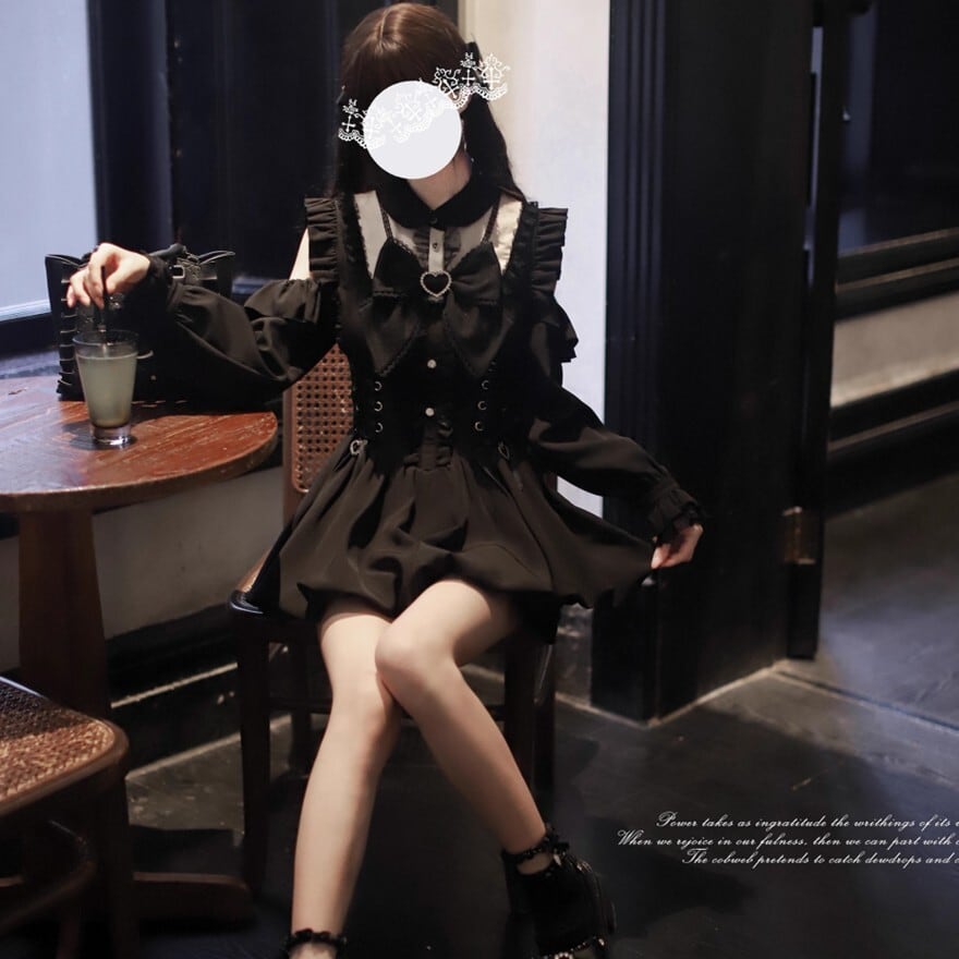 関連キーワード: #ロリータ #クラロリ #ワンピース #モノトーン #リボン #ハート #レースアップ #エレガント #シック #可愛い