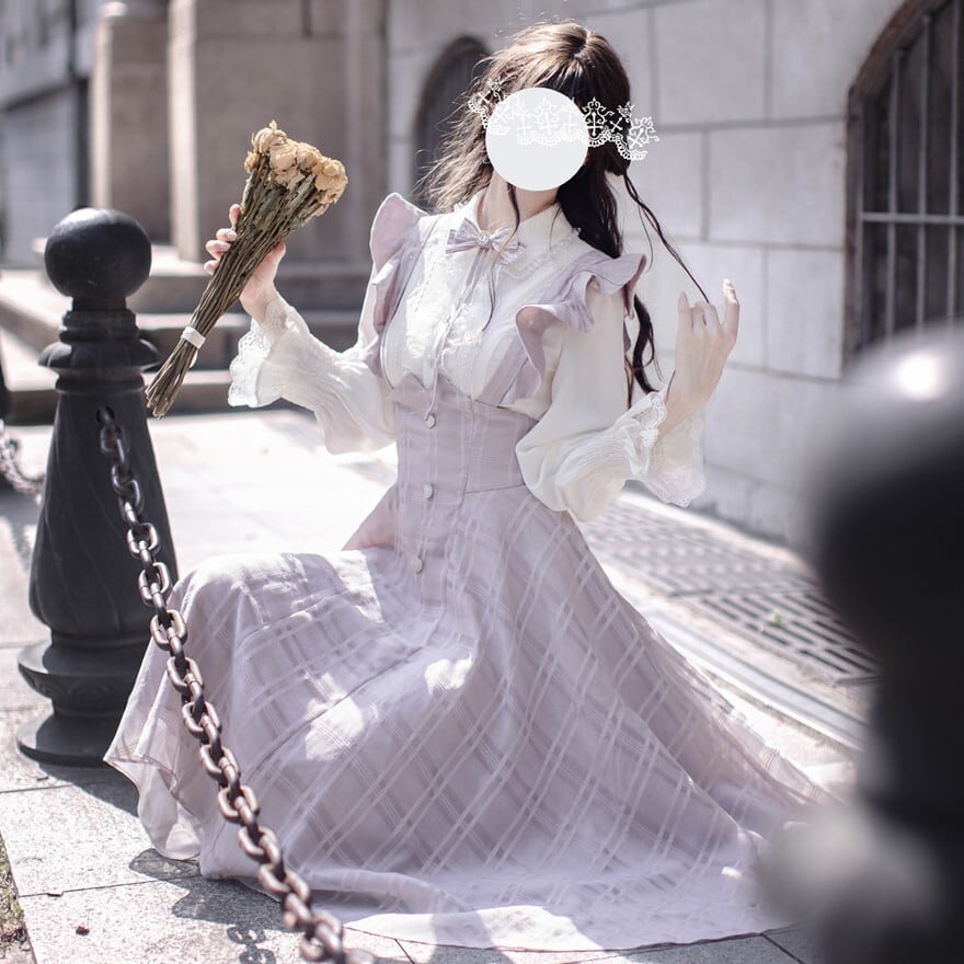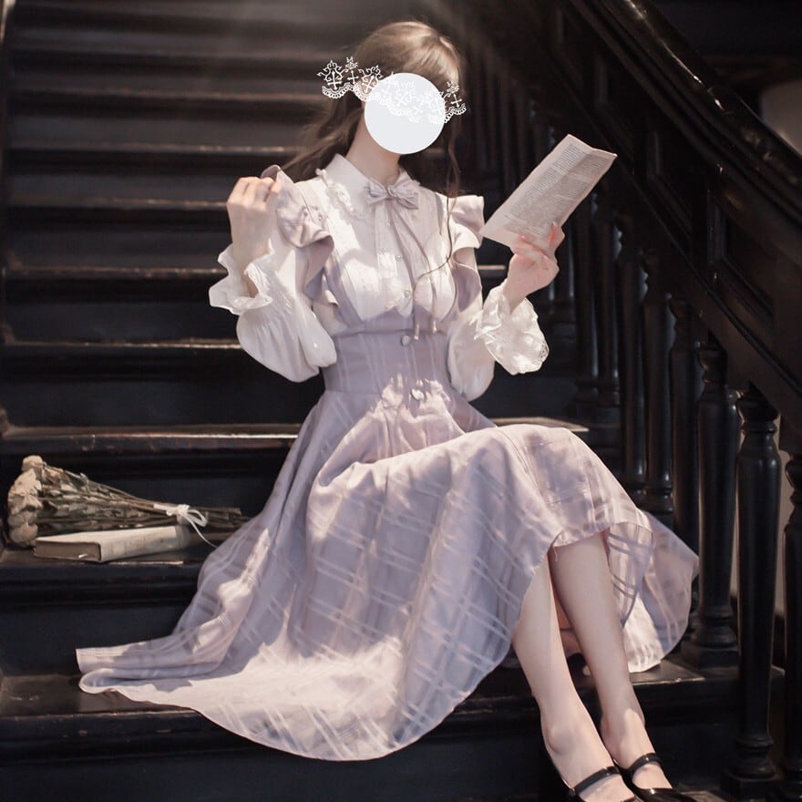 関連キーワード: #ロリータ #クラロリ #ジャンパースカート #JSK #ラベンダー #パステルカラー #チェック柄 #フリル #エレガント #可愛い