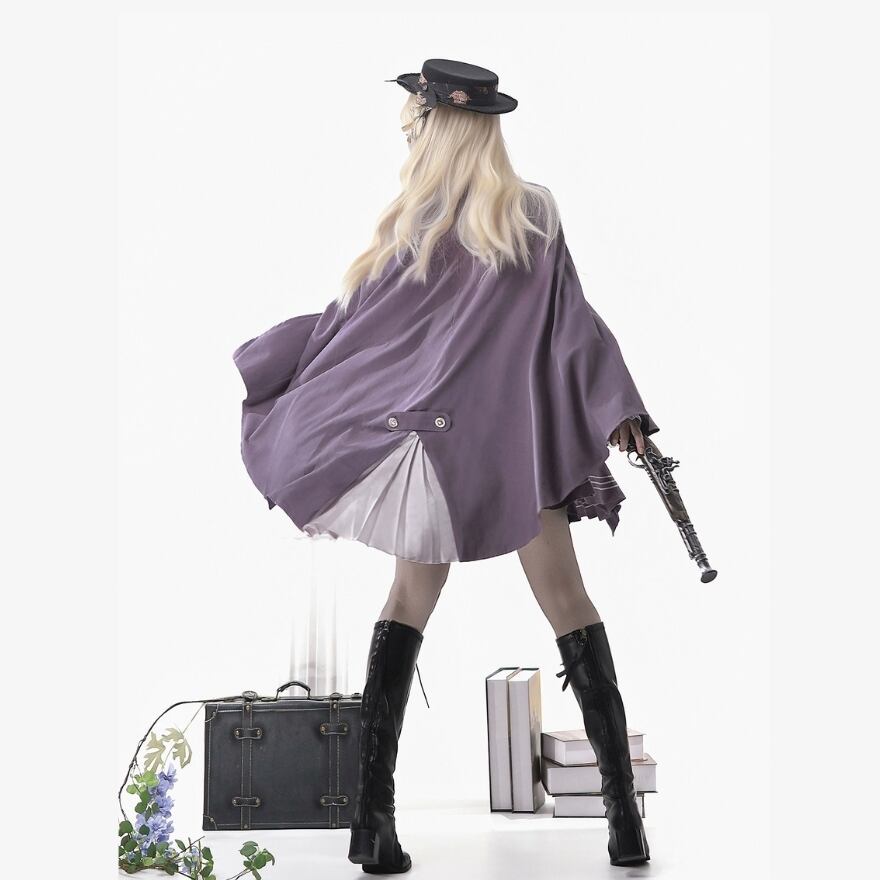 関連キーワード: #ロリータ #クラロリ #マント #ブラウス #スカート #セットアップ #エレガント #ミステリアス #可愛い #パープル