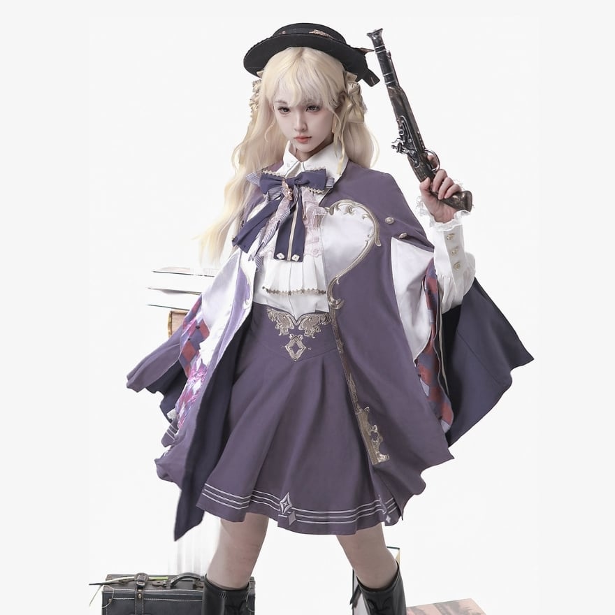 中華ロリィタ 王子風 セットアップ 3点セット マント 王子ブラウス フレアスカート パープル イベント衣装