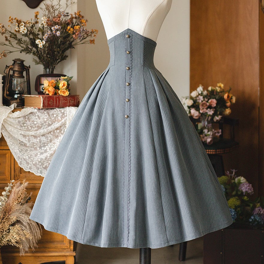クラシカルロリィタ ロングスカート ハイウエスト ピンストライプ柄 控えめ アラサー Forestシリーズ