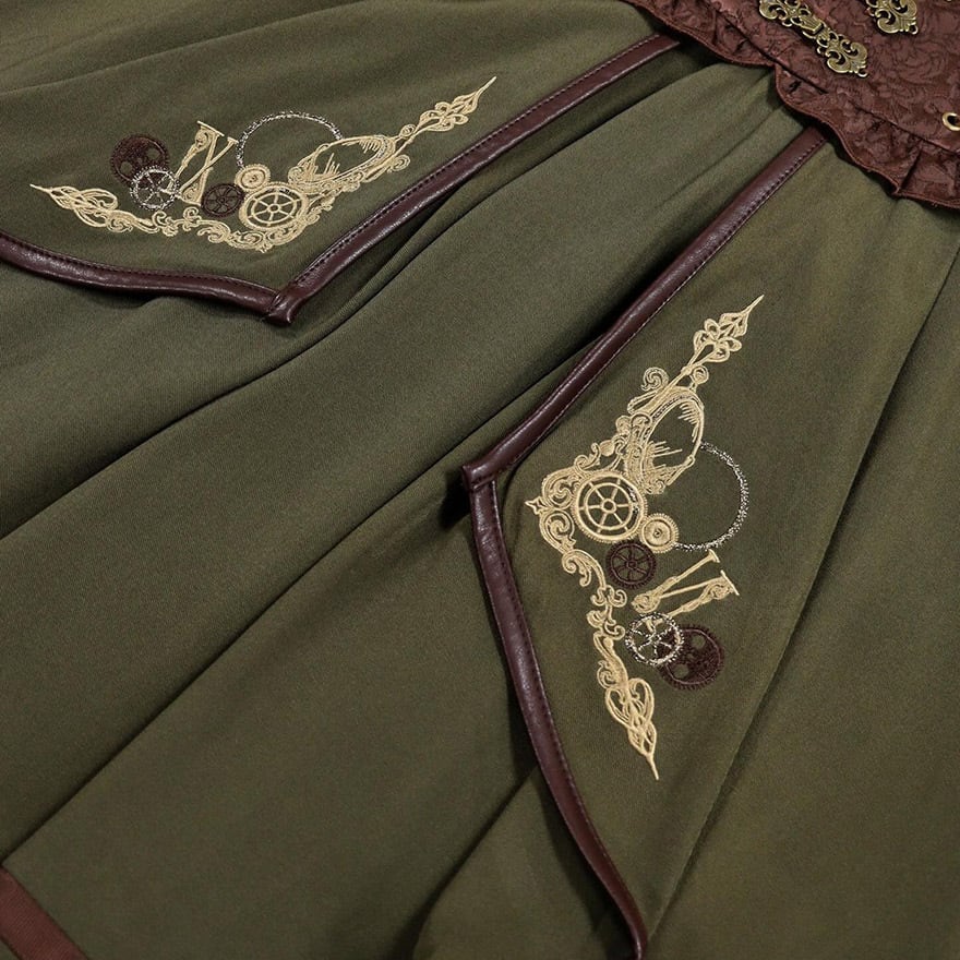 ブラウス、サスペンダースカート、リボンがセットになった、スチームパンクの世界観を存分に楽しめるコーディネートセットです。