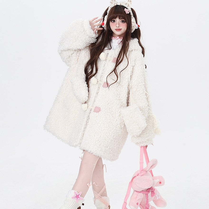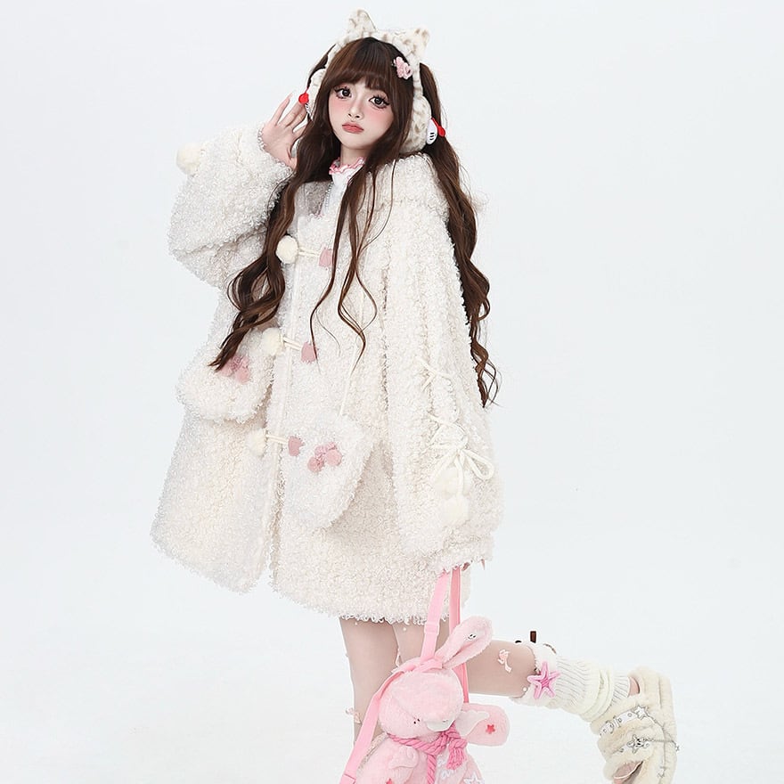 現品即納 Sサイズ ロリパン ネコ耳フード 手袋付き ダッフルコート もこもこ CRAZYGIRLシリーズ