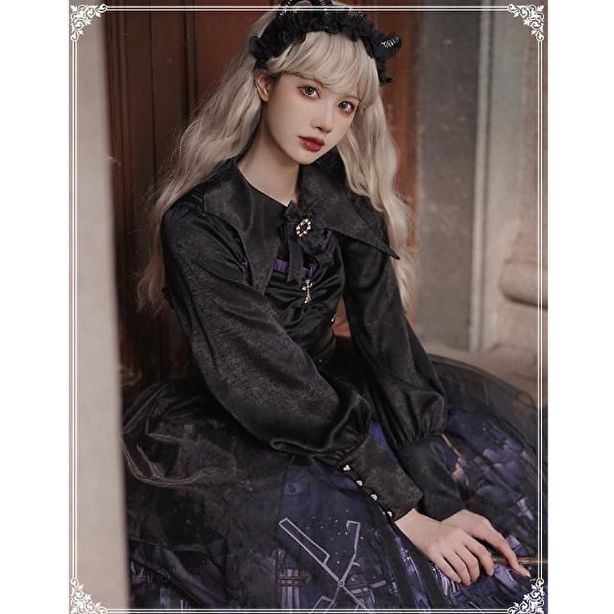 ゴスロリシャツ 蝶ネクタイ ブローチ 暗黒系 病みかわいい ゆめかわ