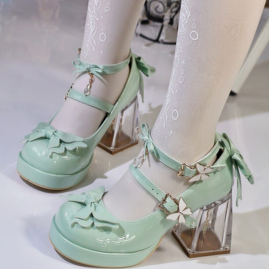 ロリィタパンプス クリアヒール クリスタル butterflyリボン