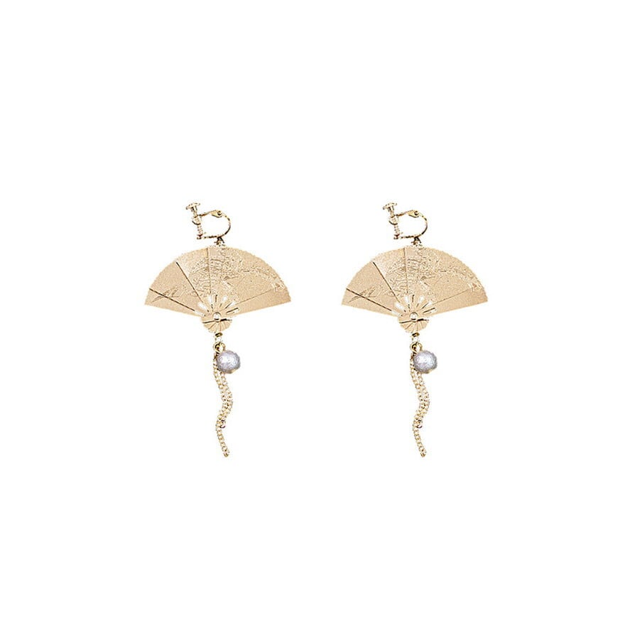 扇子をモチーフにした、チャイナ風のクリップ式イヤリングです。
