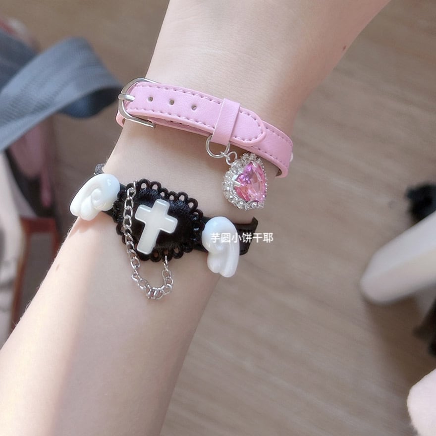 十字架や天使の羽など、デザインが可愛いブレスレットです。