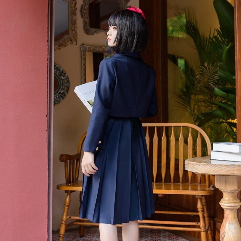 ショート丈ジャケットにワンピースの2点セットJK制服です。