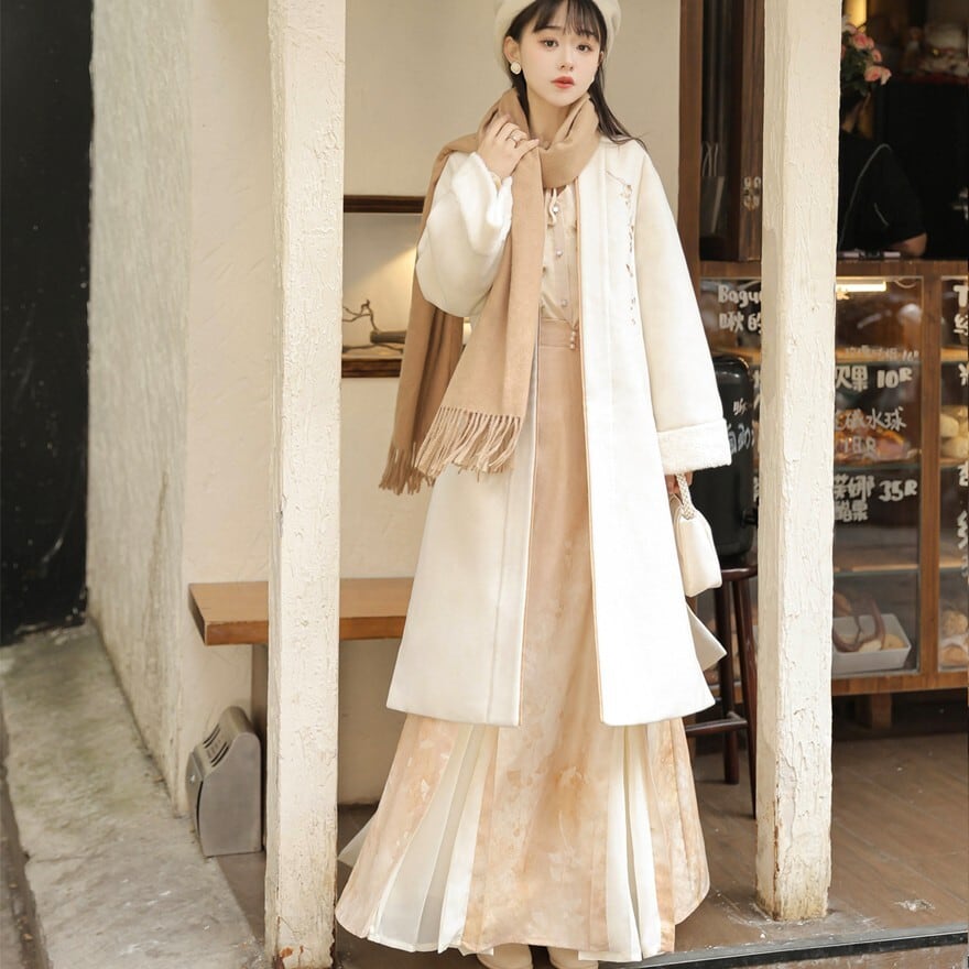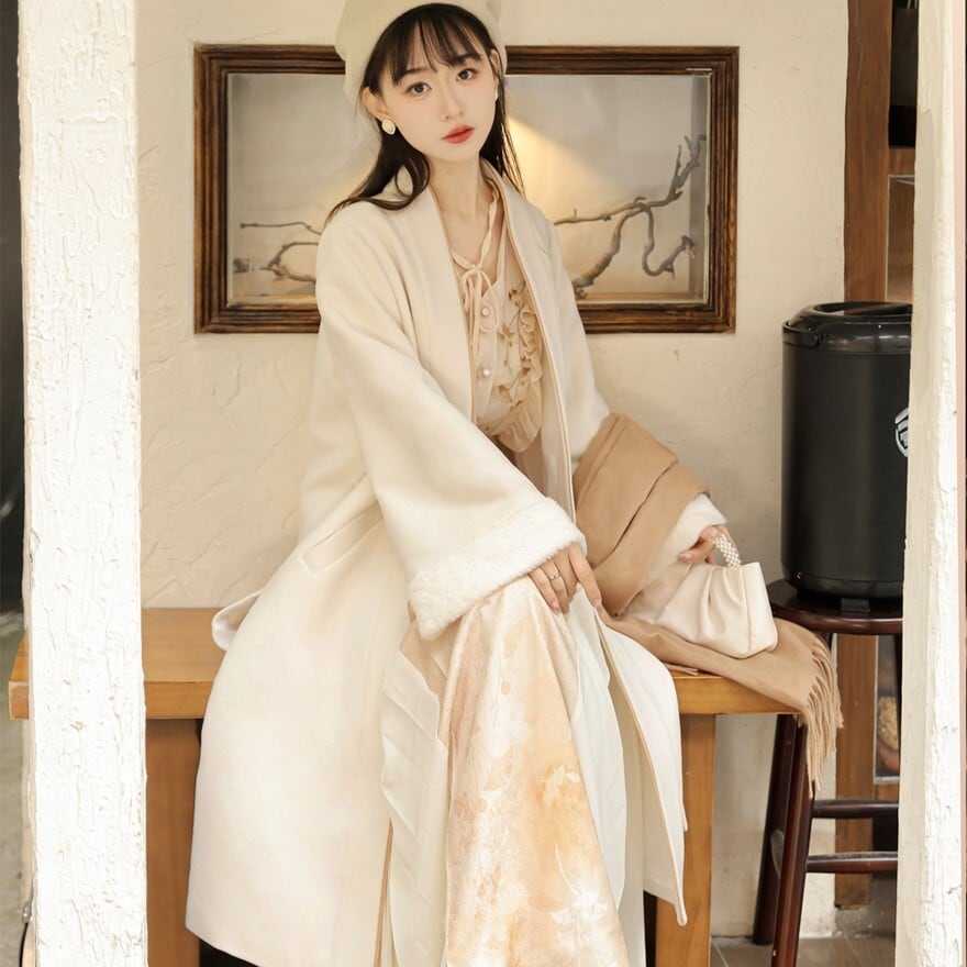関連キーワード: #コート #ロングコート #ノーカラー #刺繍 #中華風 #漢服 #ロリィタ #クリーム色 #冬 #上品