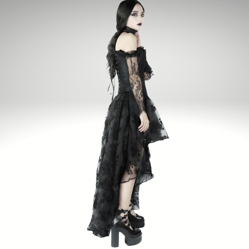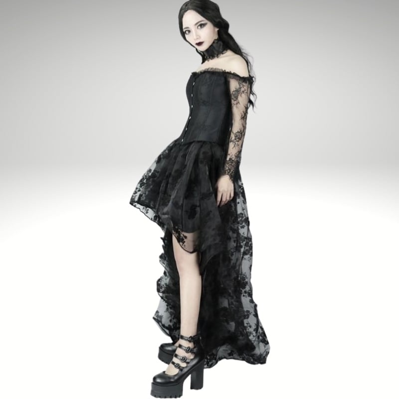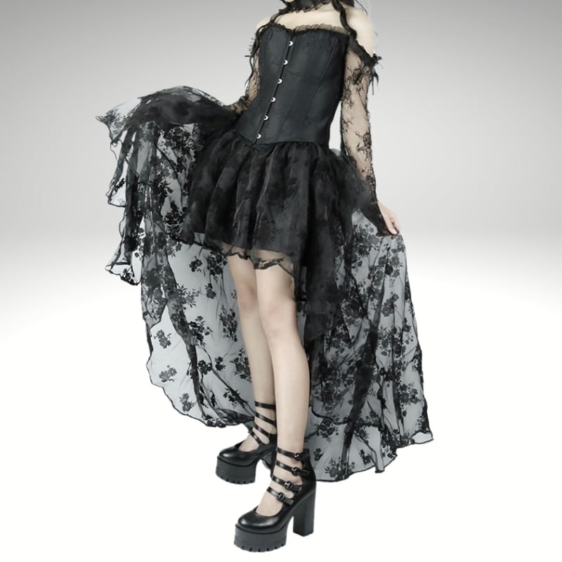 本格的なHard gothic、シアーな花柄レースのスカート