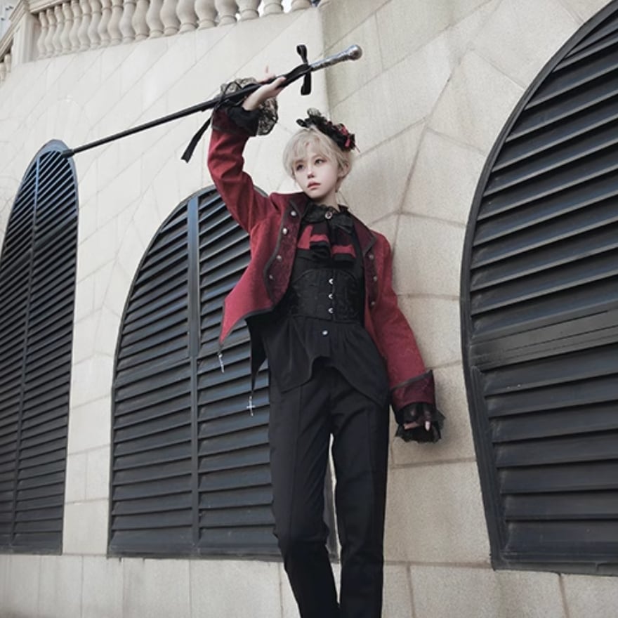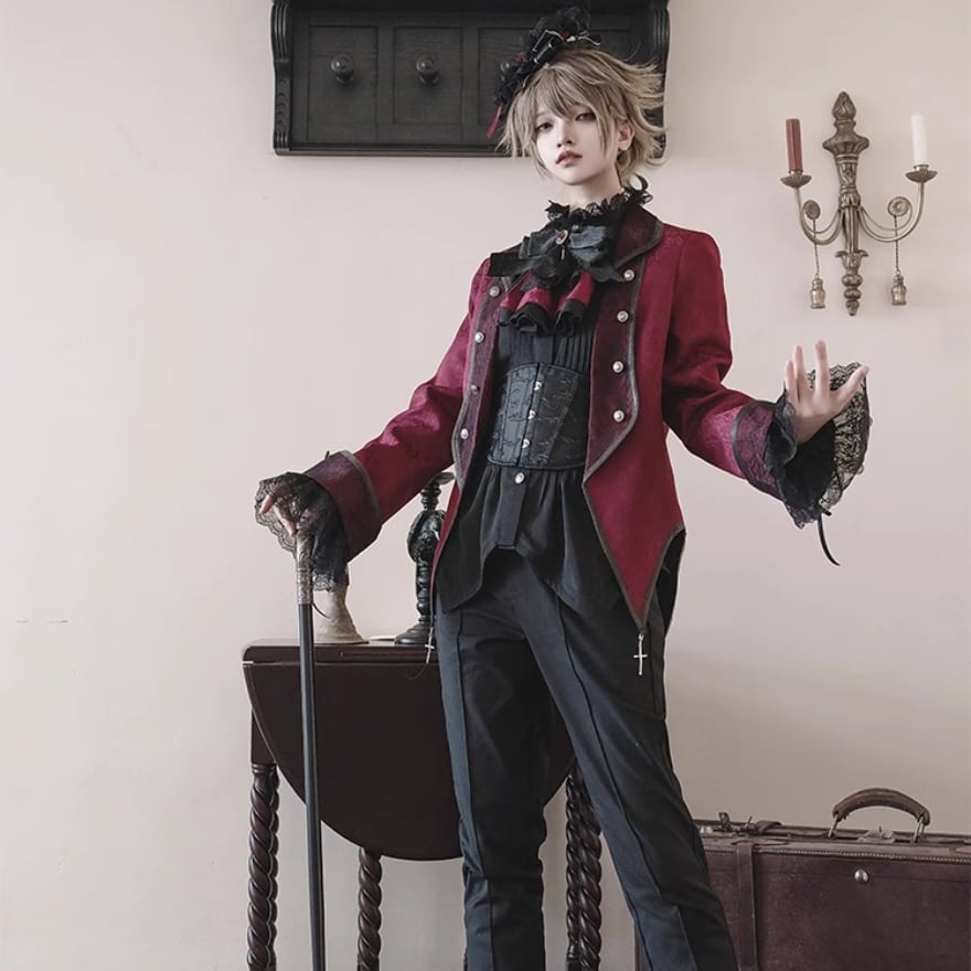 終売 在庫限り 王子系 男装ジャケット バーガンディ CastleToo 男装コスチューム コンカフェ衣装