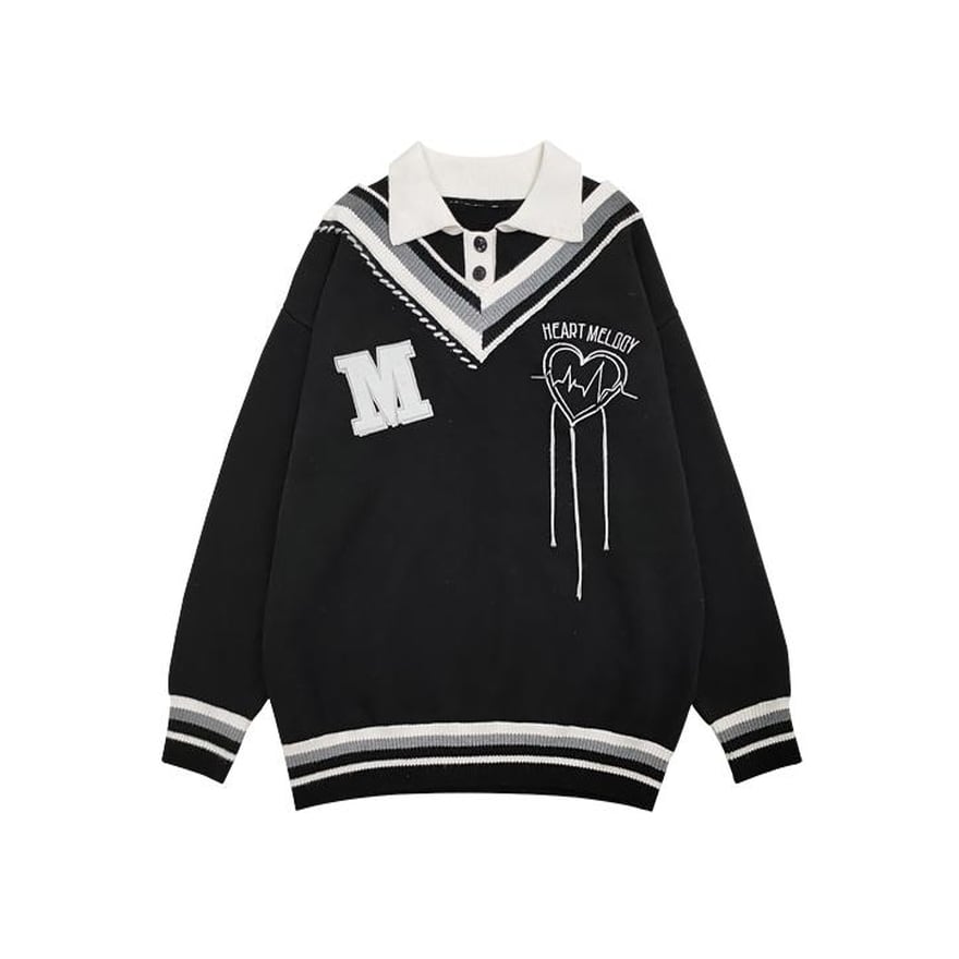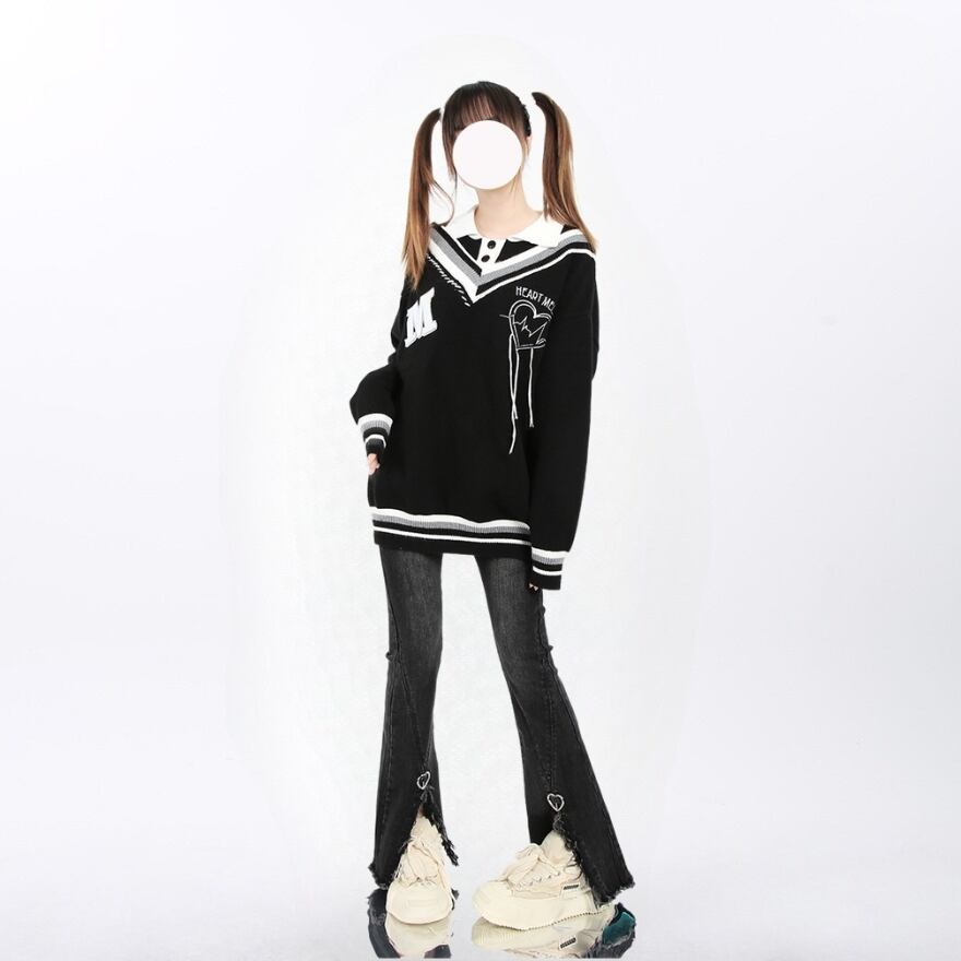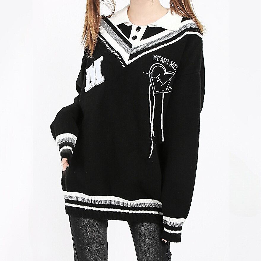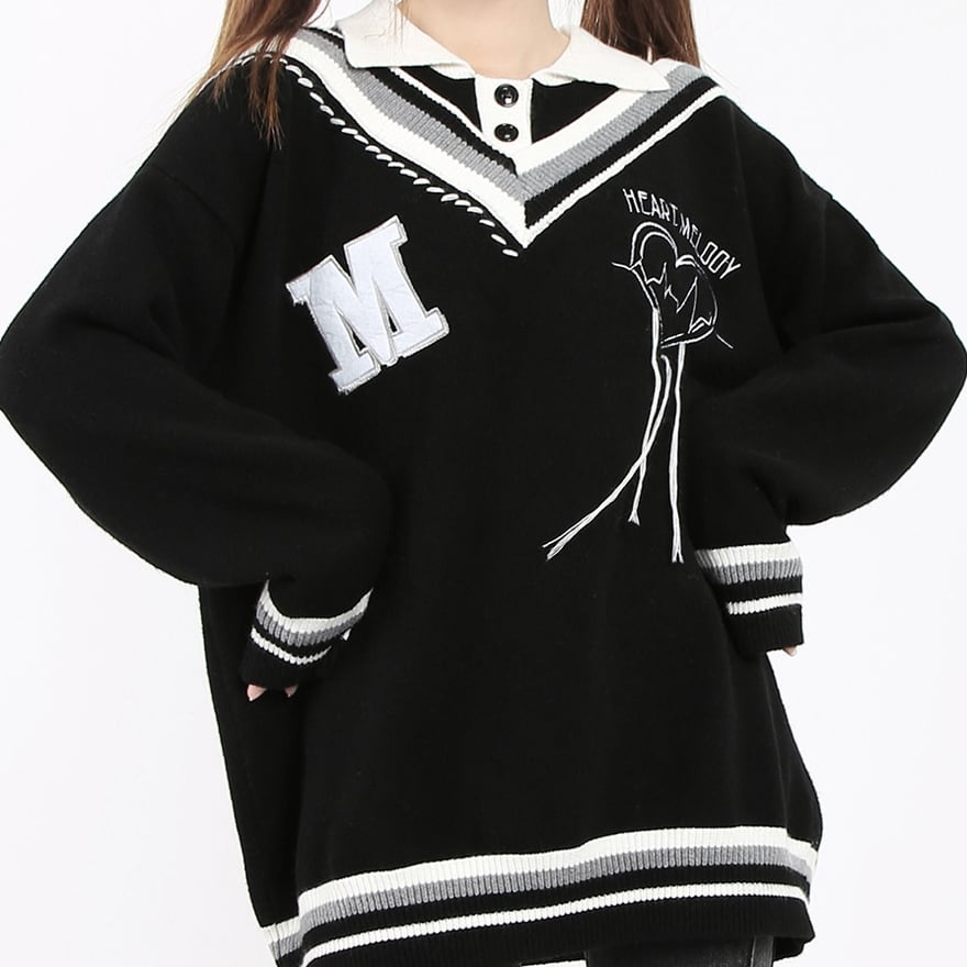セミロリ ニット セーター セーラー風 フェイクツーピース 甘辛 Catwish JKロリータ 刺繍ロゴ