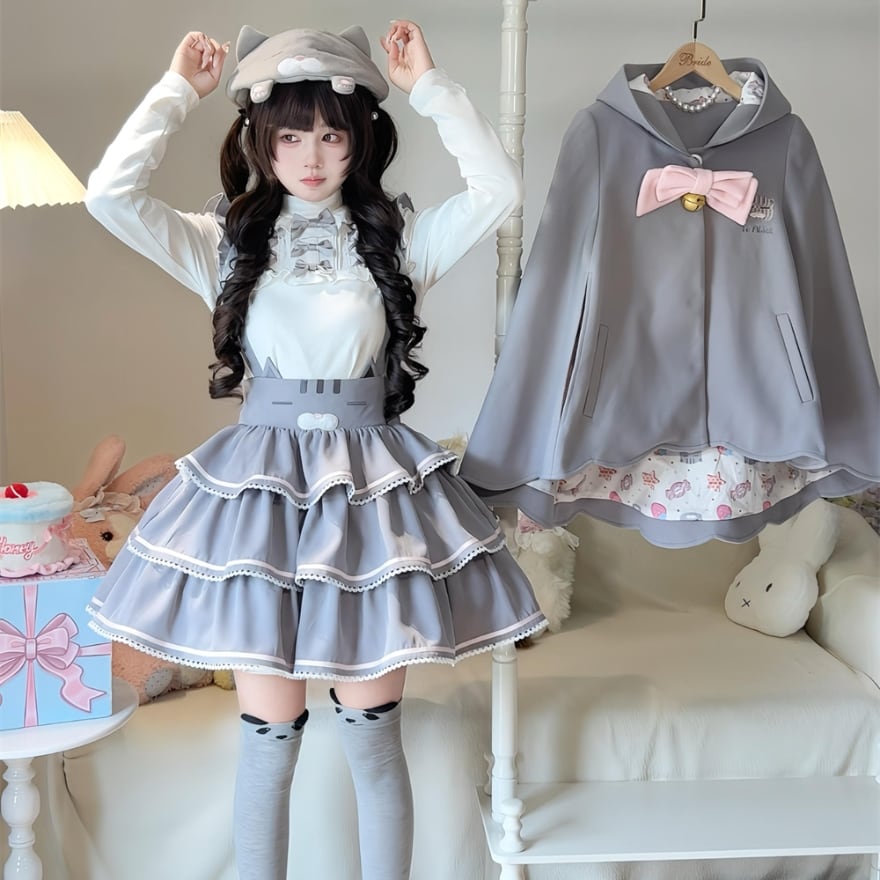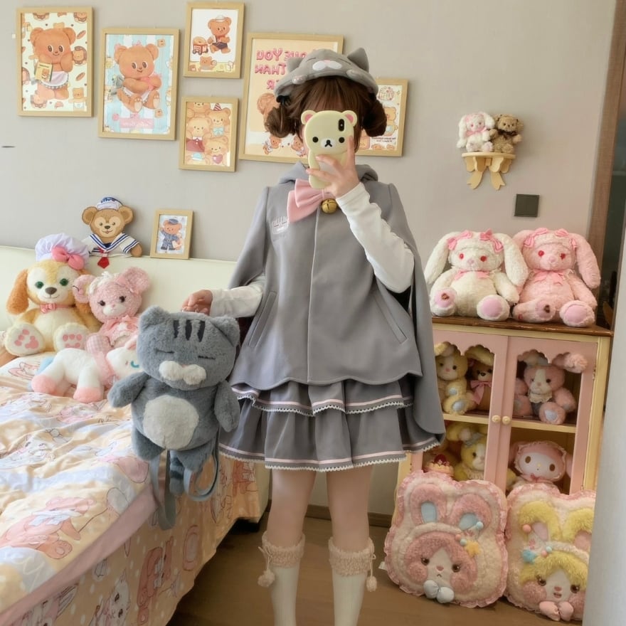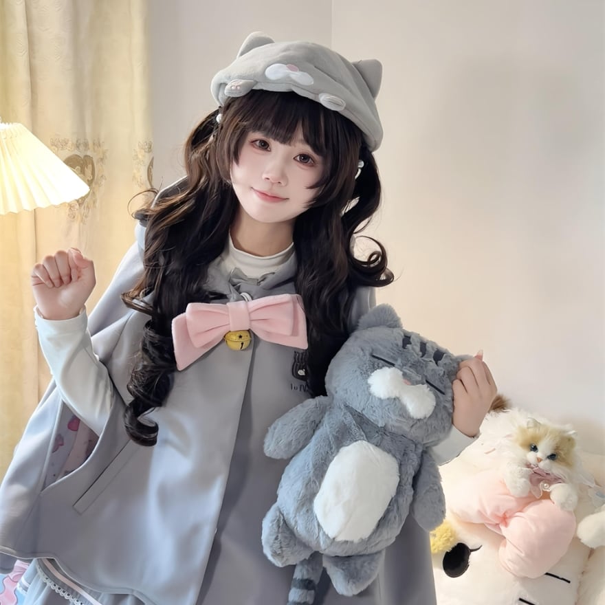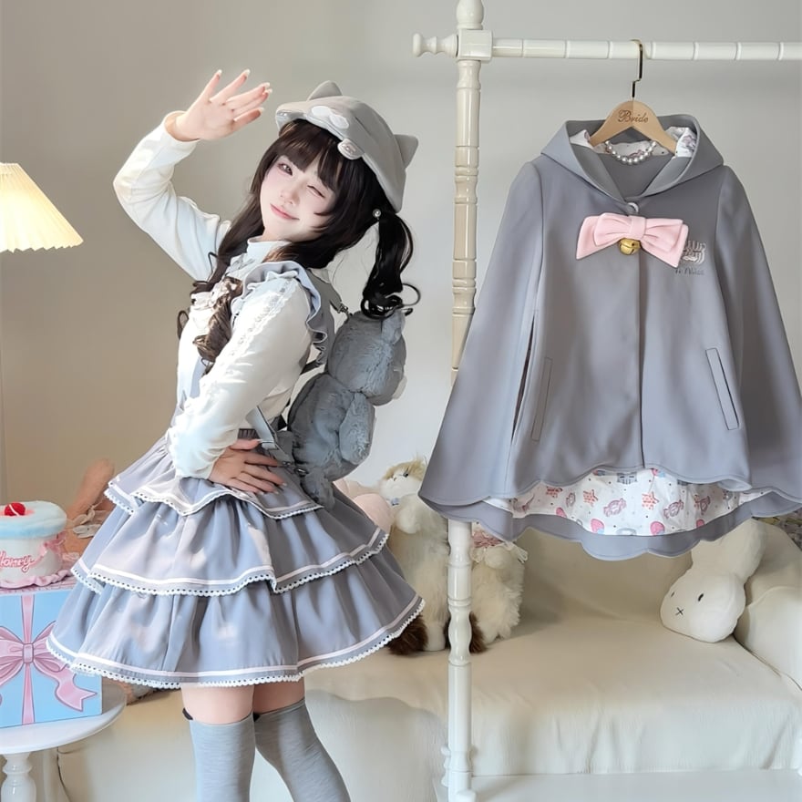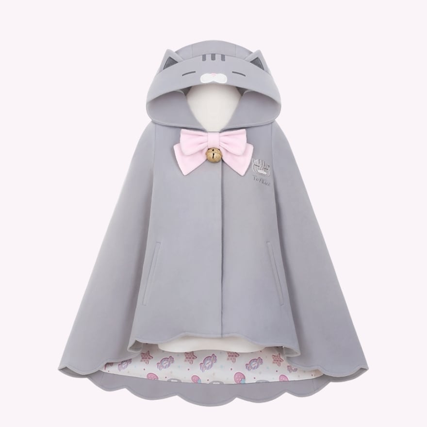 ゆめかわいい ふわふわ 猫探偵 マント グレー 甘ロリコーデ イベント衣装